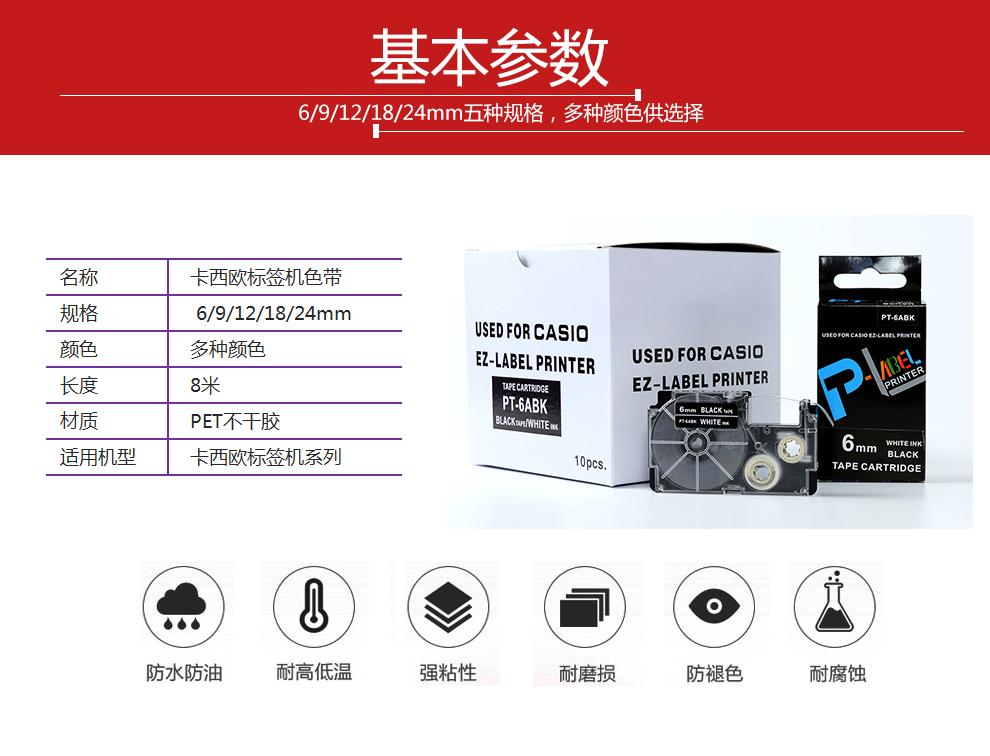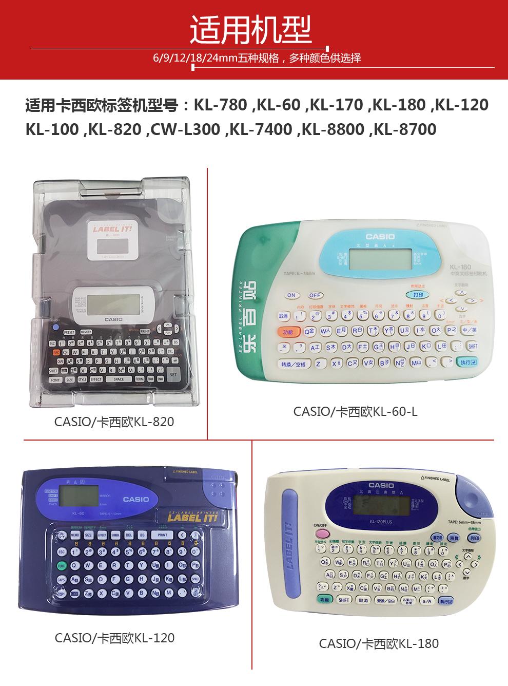 18MM fondo blanco texto negro etiqueta adhesiva Casio cinta para impresora de etiquetas adecuada para máquina de etiquetas CASIO