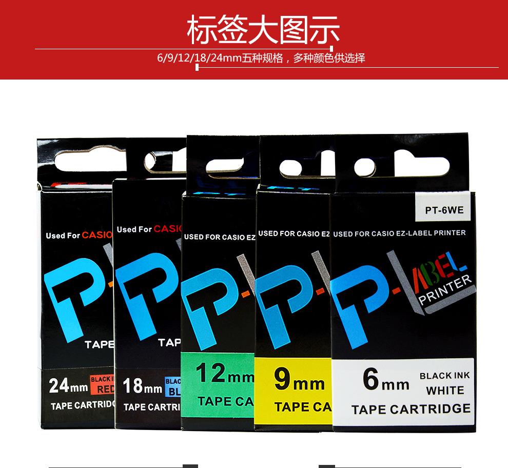 18MM fondo blanco texto negro etiqueta adhesiva Casio cinta para impresora de etiquetas adecuada para cinta para máquina de etiquetas CASIO