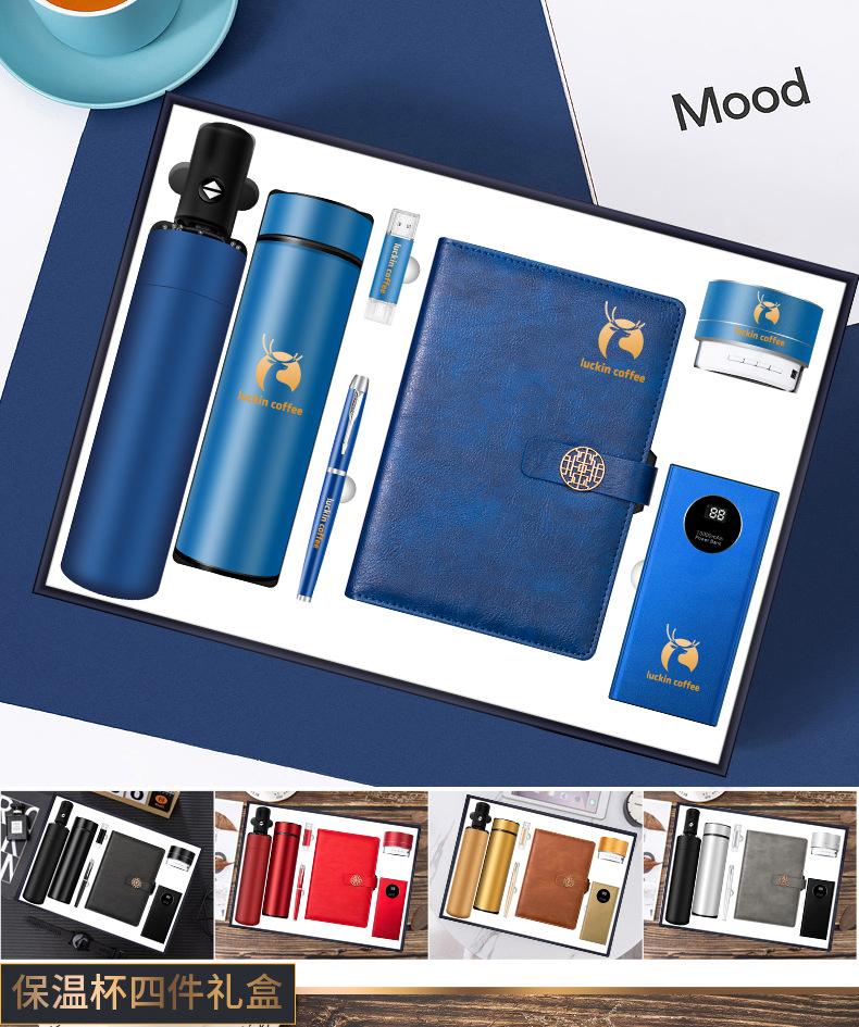 Guochao buckle temperature control cup round pen 16g mobile phone u disk four-piece set gold with no. 2 blue box