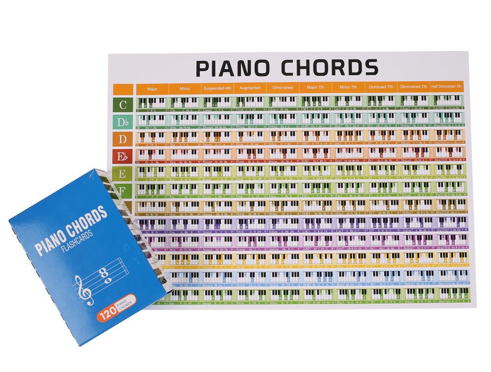 Tarjetas de Acordes de Piano en Caja de Regalo - Tabla de Acordes de Piano Incluida - Tarjetas Flash Codificadas por Colores para 120 Acordes - 10 Acordes Frecuentes, 12 Tonalidades - Tarjetas Flash Educativas Divertidas para Piano, Aprendices de Música