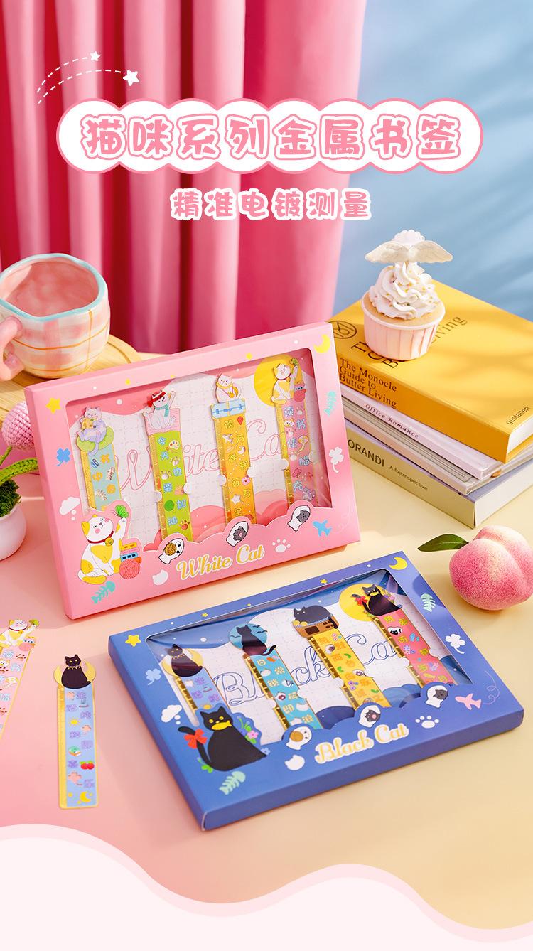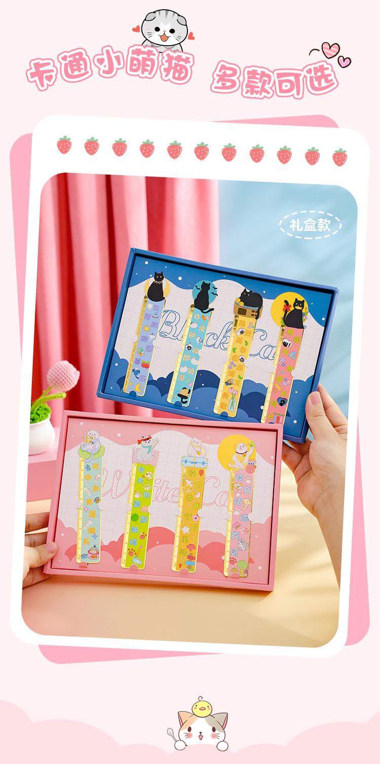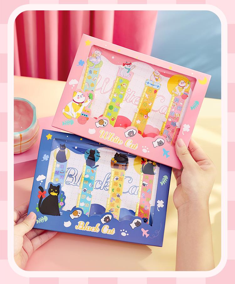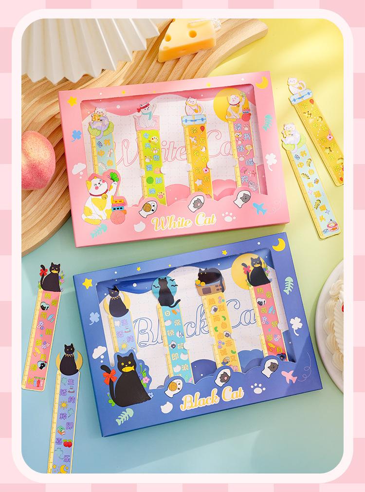 Cat book ruler--white cat four gift box, Cat book ruler--black cat four gift boxes