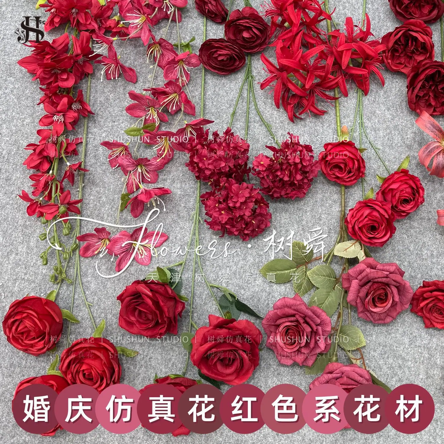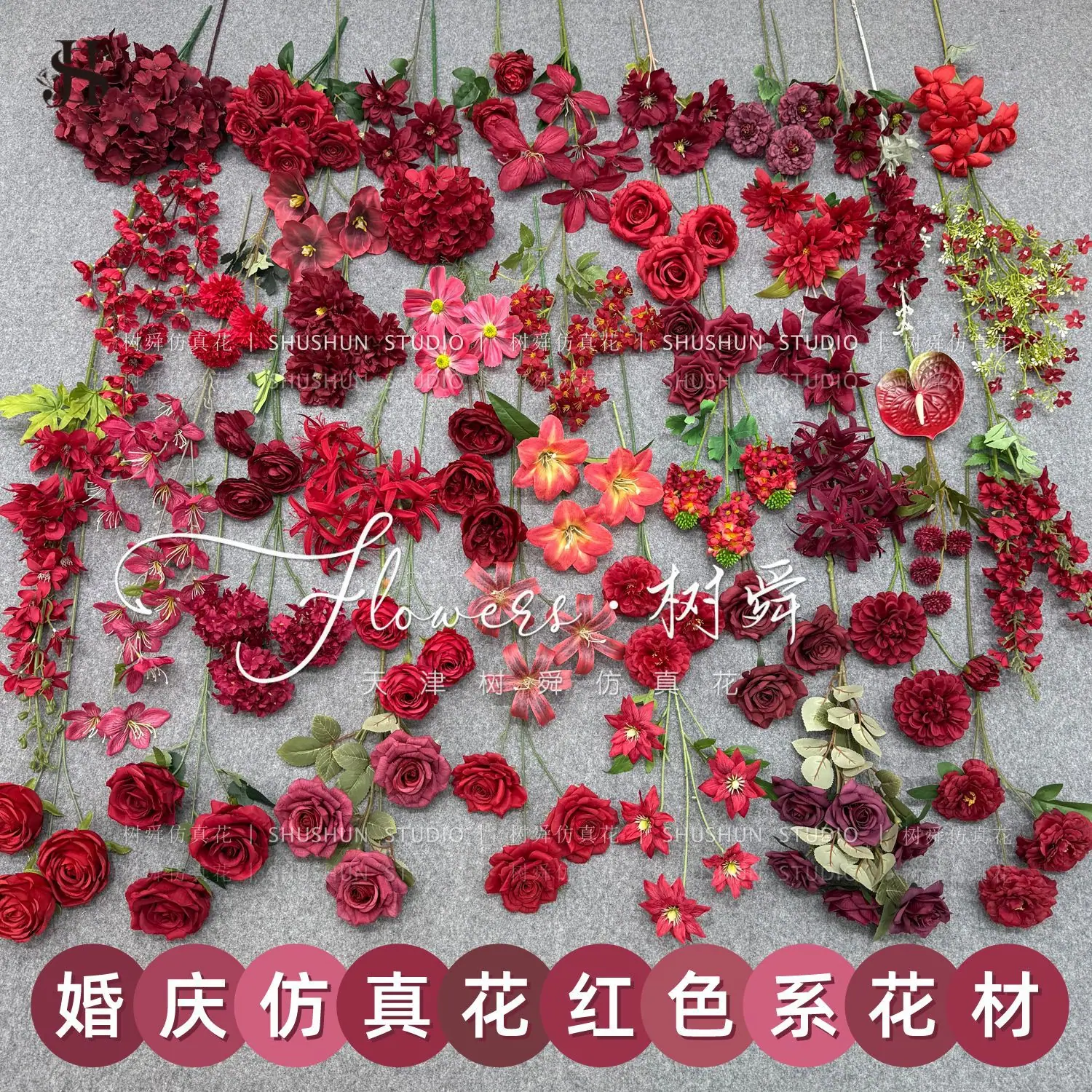 Serie Roja Flores Artificiales Jardín de Monet Salón de Bodas Jardín Proyecto Decoración de Ventana Flores Artificiales Rosas Hortensias