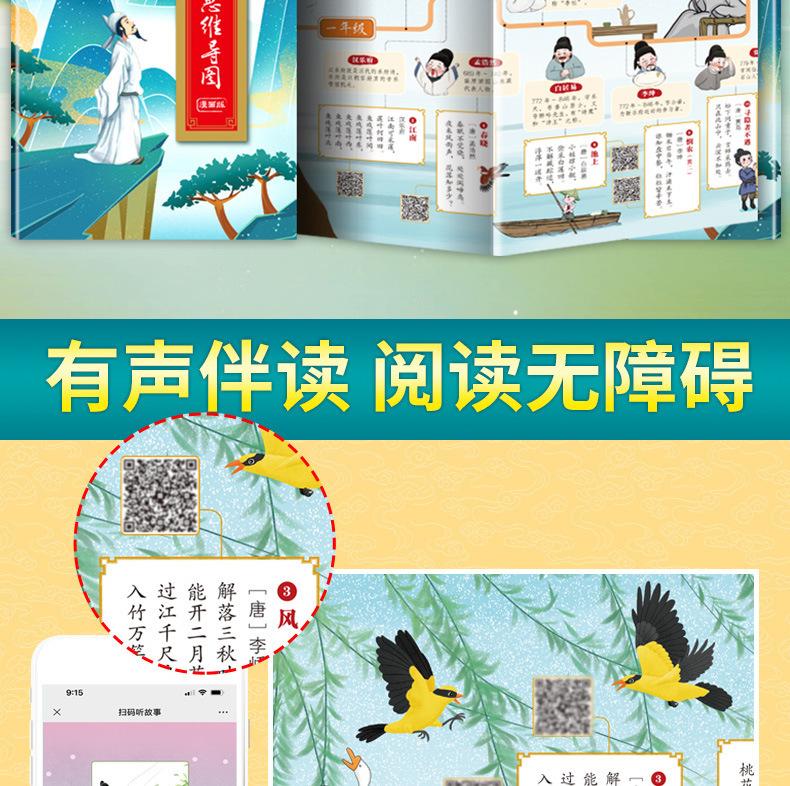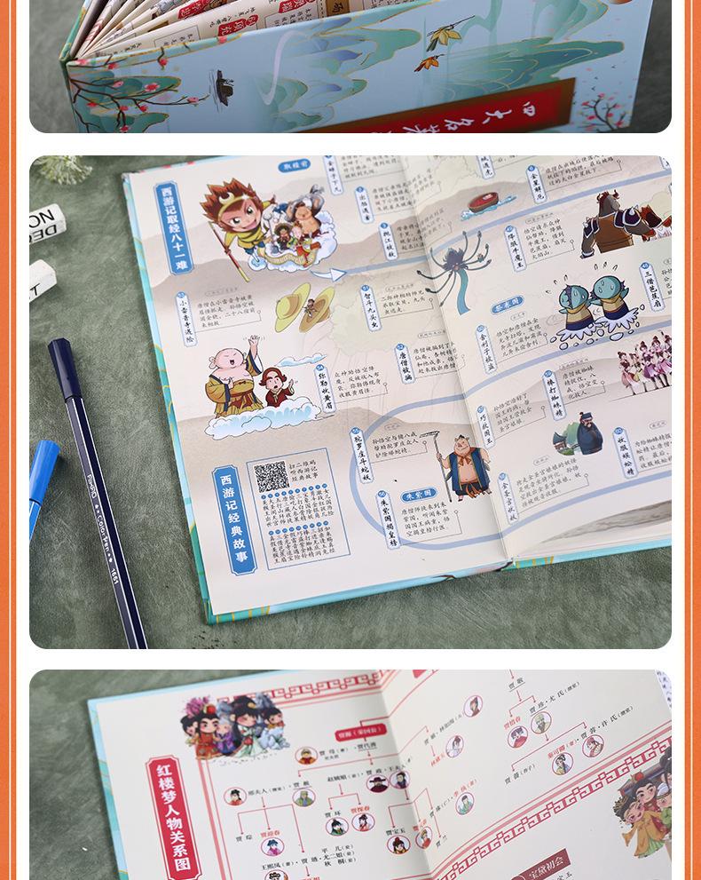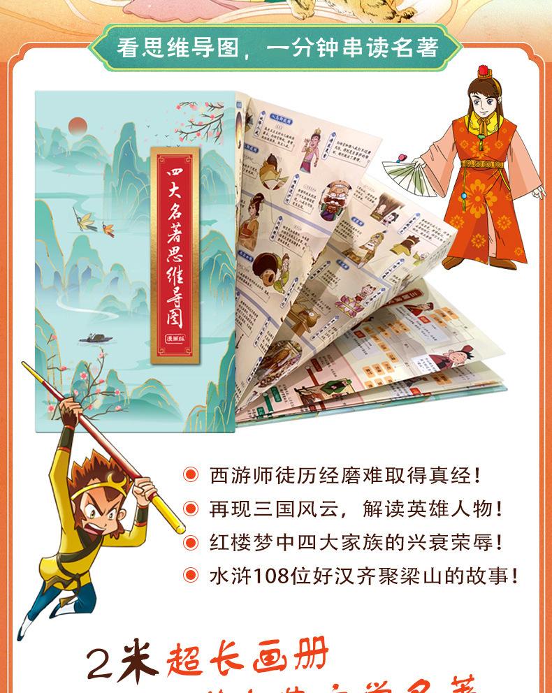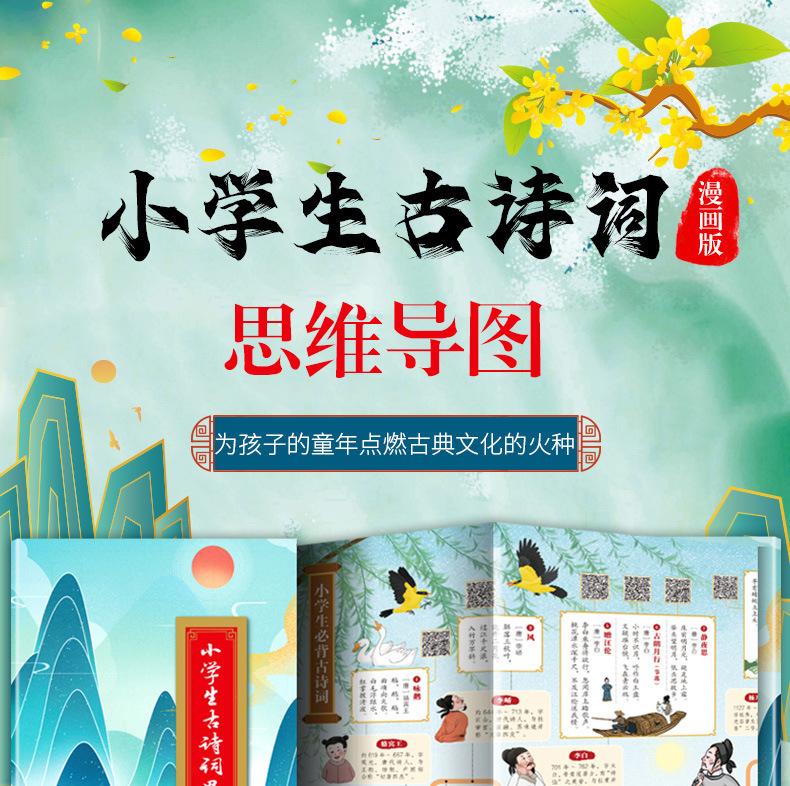 The four famous mind map comic version, Pupils' Ancient Poetry Mind Map Cartoon Edition, [All 2 Volumes] Mind ...