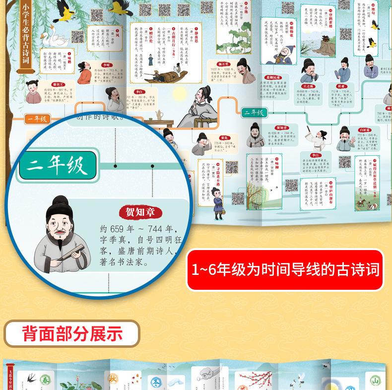 [All 2 Volumes] Mind Map of Four Famous Books Pupils' Ancient Poetry Mind Guide