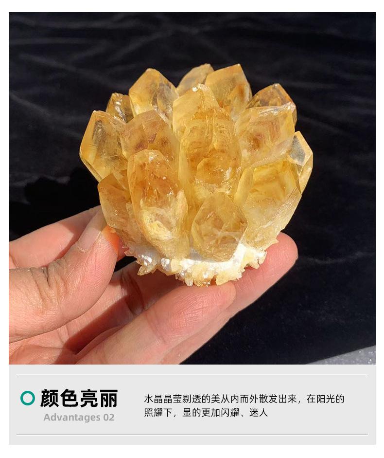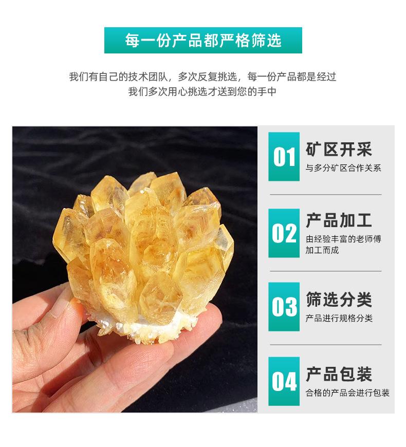 Cristal amarillo natural diente de cristal racimo violencia cristal amarillo piedra espécimen hogar desmagnetización piedra energética artesanías al por mayor