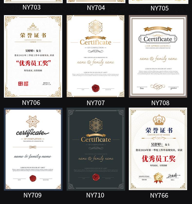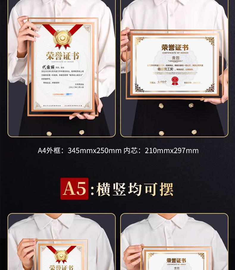 Cristal Vidrio Certificado de Honor Personalizado a4 Certificado de Mérito Premio de Graduación Carta de Autorización de Nombramiento Concha Premio de Graduación Personal