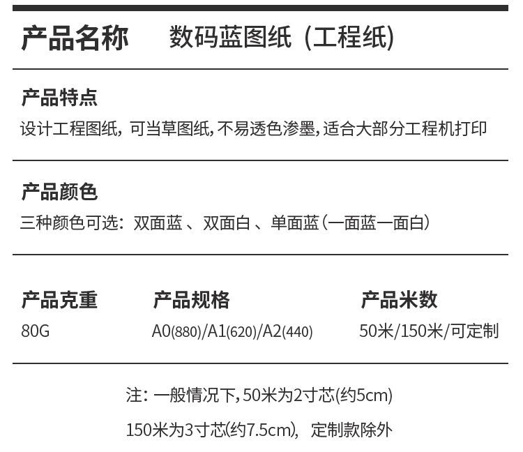 Double-sided blue drawing a0 format 880mm*150m/1 roll