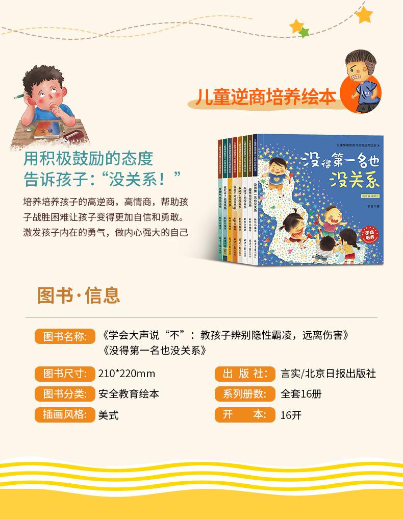 Un conjunto completo de 16 libros ilustrados de iluminación contra el acoso escolar, 8 entrenamientos de cociente de adversidad para niños, 8 libros de adversidad para niños, no importa si no son famosos
