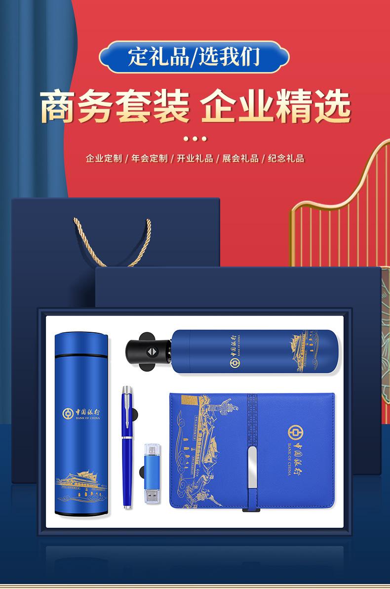 Five-piece set [digital display business cup + notebook + business pen + umbrella + USB flash drive 16g] blue