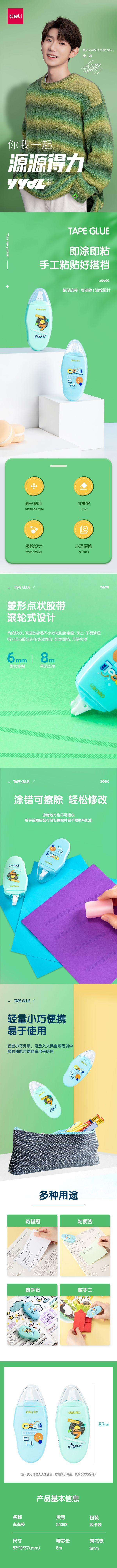 Deli papelería pegamento de puntos creativo simple estudiantes de secundaria superior primaria sin rasgaduras adhesivo de doble cara alta viscosidad tipo cinta correctora 6m8m