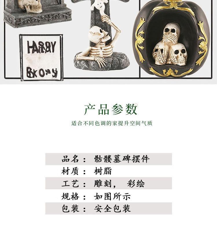 Nuevo producto transfronterizo: Calavera, lápida, calabaza, decoración para fiesta de Halloween, arreglo de escena de escritorio, adornos de resina para Halloween.