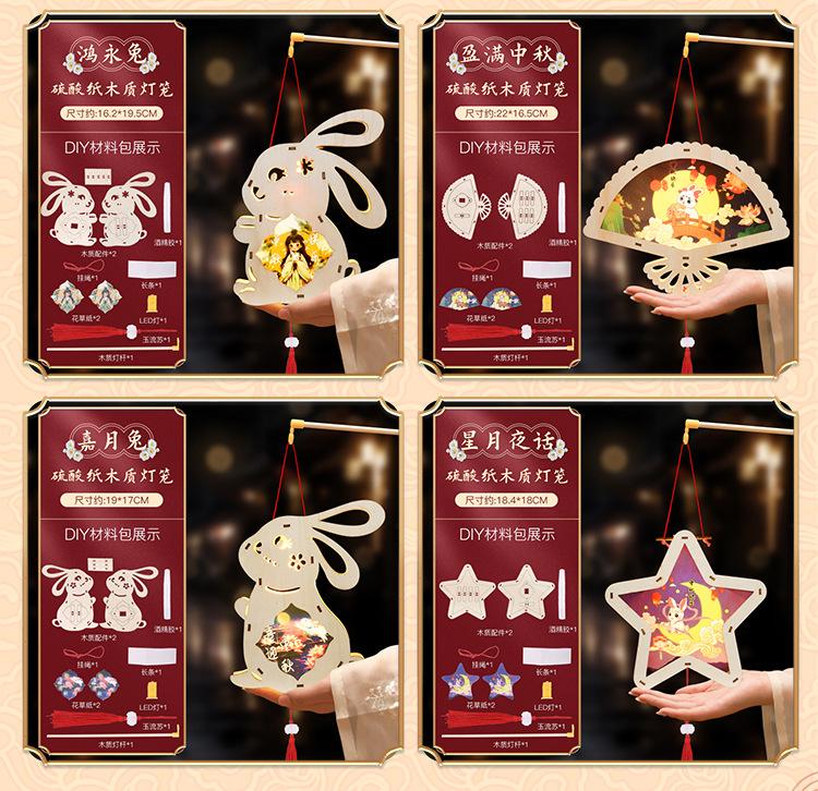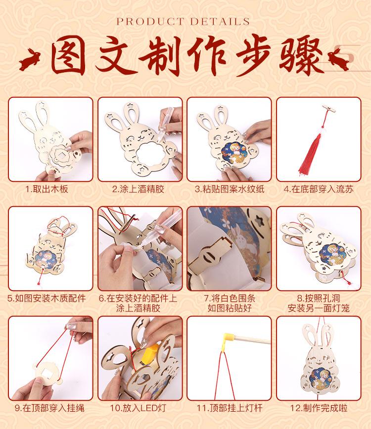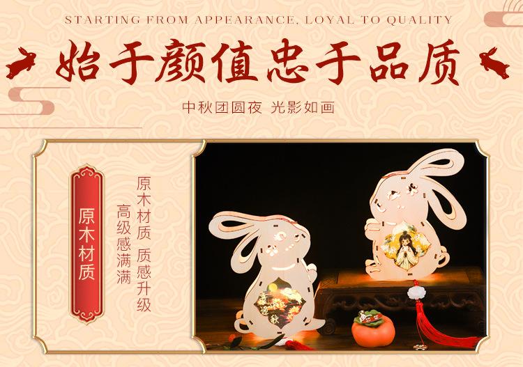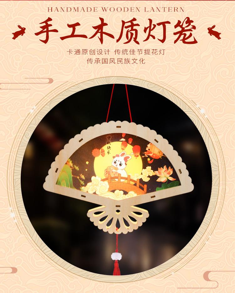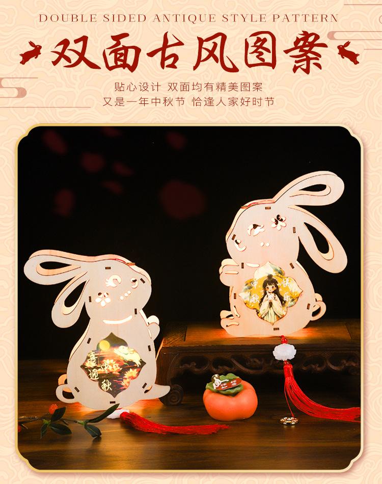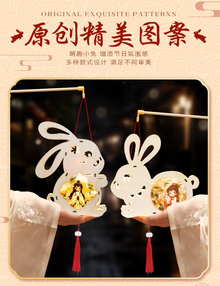 Linterna de madera de mediados de otoño con impresión a color, linterna portátil para niños, lámpara de conejo de jade antigua de madera, materiales hechos a mano