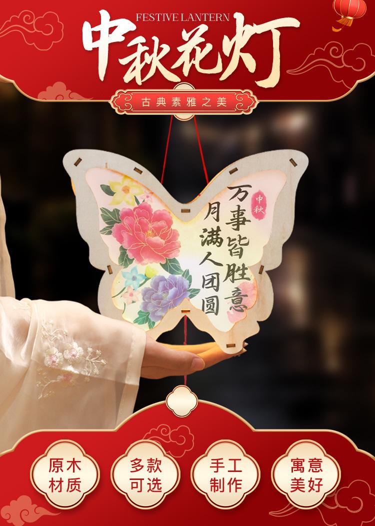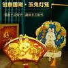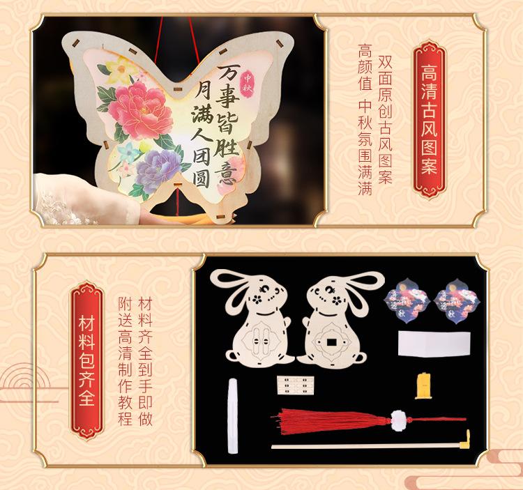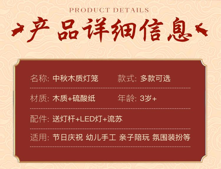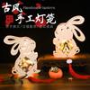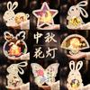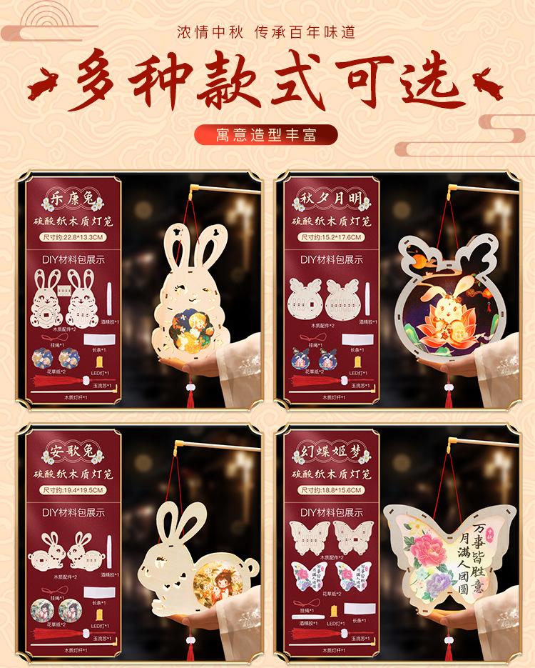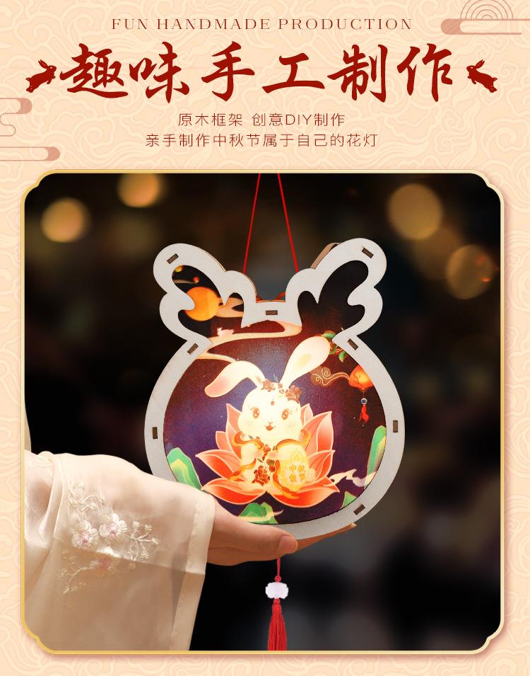 Linterna de madera de mediados de otoño con impresión a color, linterna portátil para niños, lámpara de conejo de jade antigua de madera, materiales hechos a mano