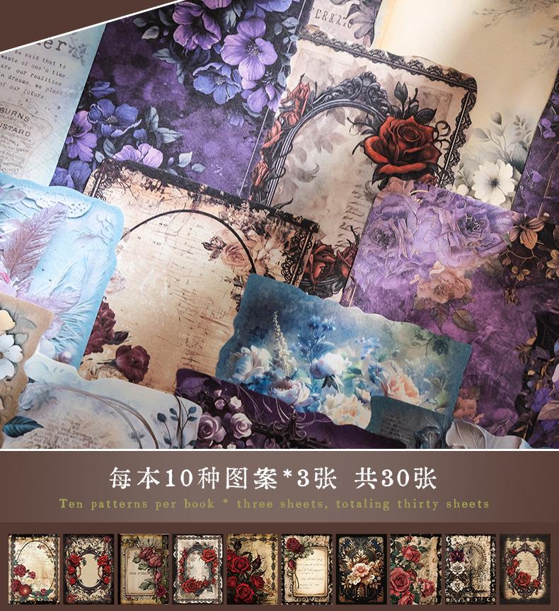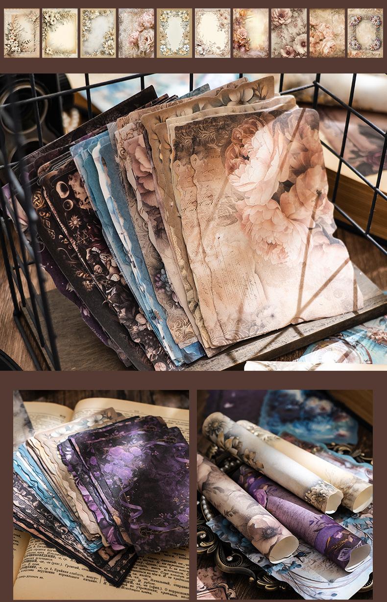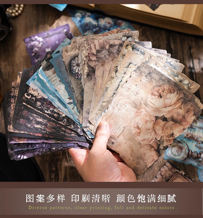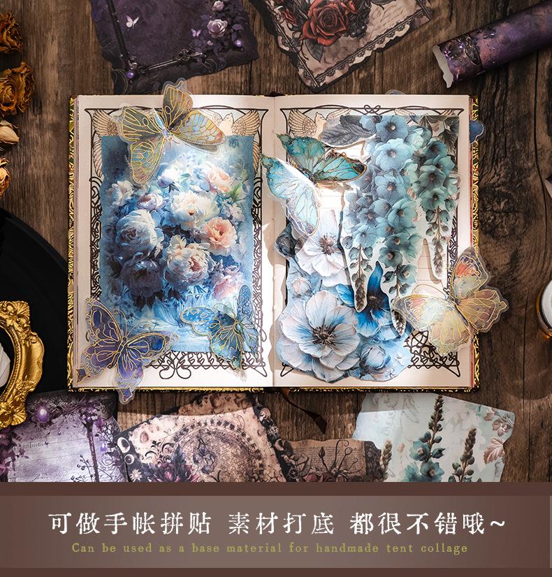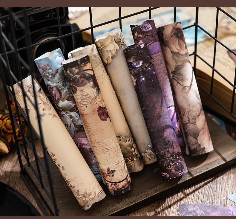 Serie Reino Secreto Sombra de Flores Transfronteriza Papel de Material para Cuenta de Mano de Flores Retro No Adhesivo Fondo Avanzado Pegatina DIY para Pared