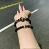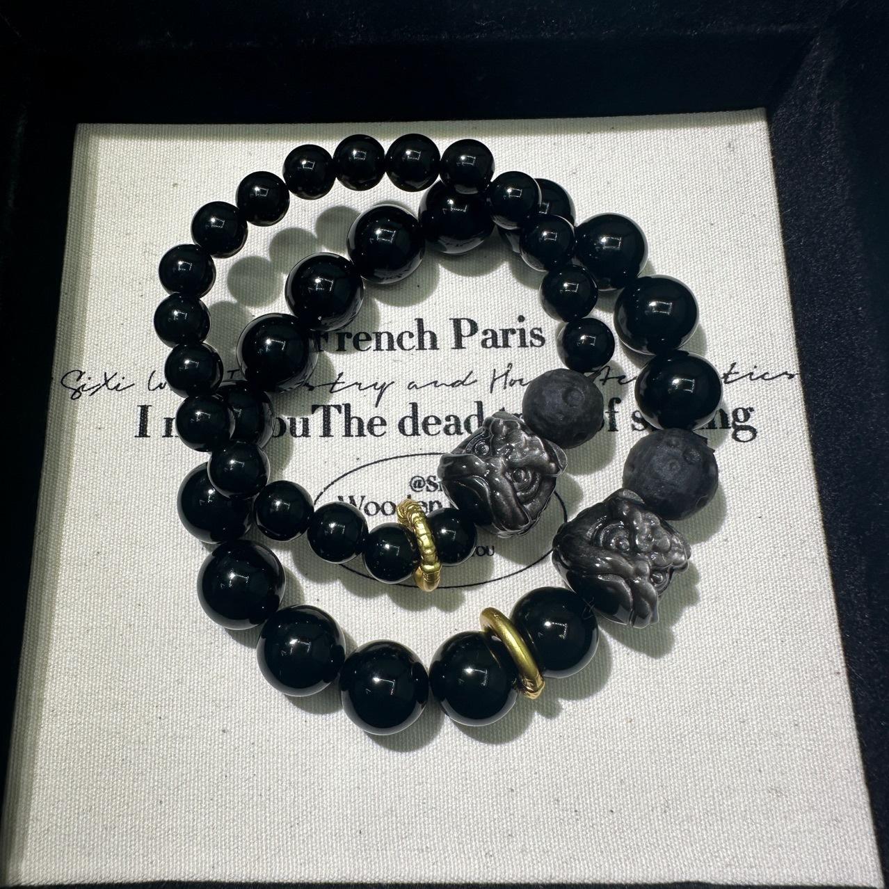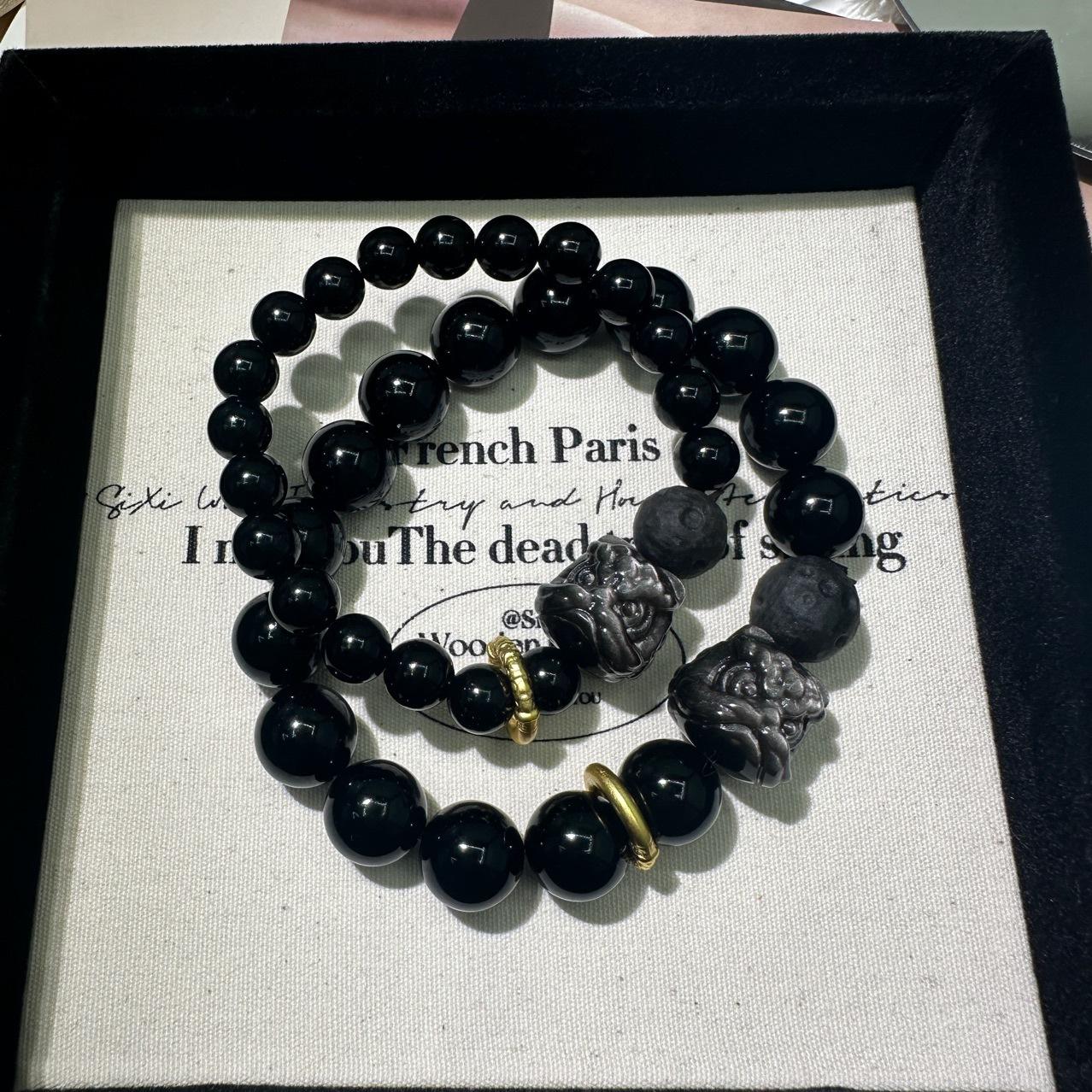 Pulsera de Obsidiana para Pareja Caliente Caliente Obsidiana Natural Diseño de Círculo Sencillo Pulsera Joyería Decoraciones