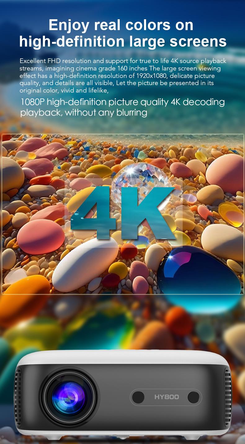 Nuevas Ventas Directas de Fábrica Hy800 Exportación Proyector Transfronterizo Enfoque Automático Soporta Corrección Trapezoidal 1080P Teatro