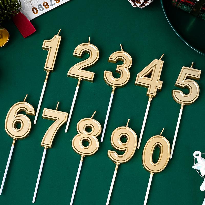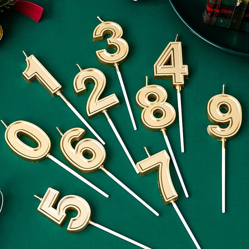 Vela Número Oro Champagne Decoración Pastel de Cumpleaños Ecológica Sin Humo Vela Pequeña Fiesta Niños Dibujos Animados Mesa de Postres