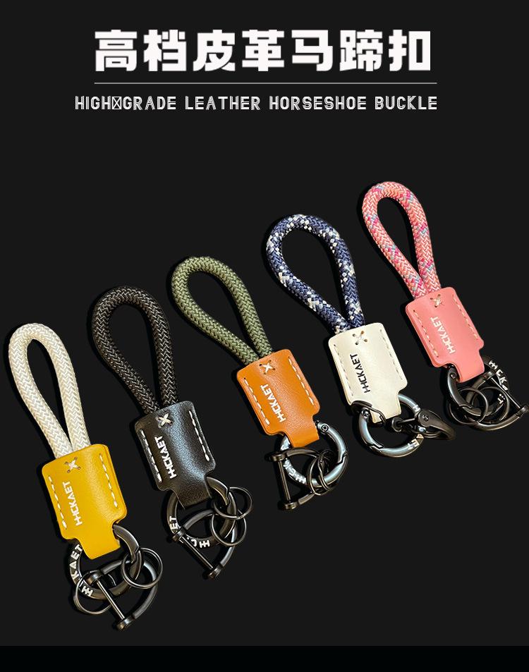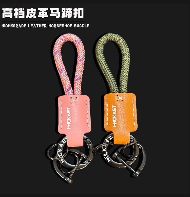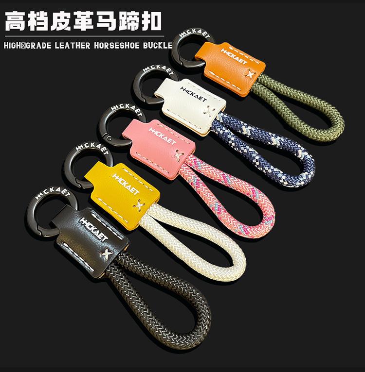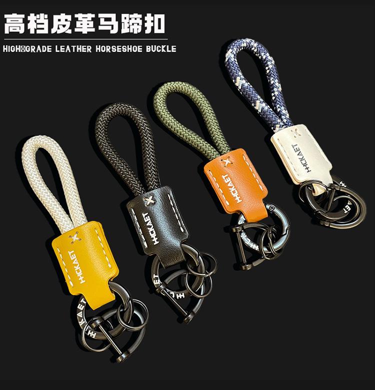 Llavero de herradura de cuero PU tejido de tendencia creativa, colgante pequeño, llavero colgante para bolsa de coche, pequeño regalo