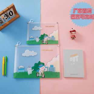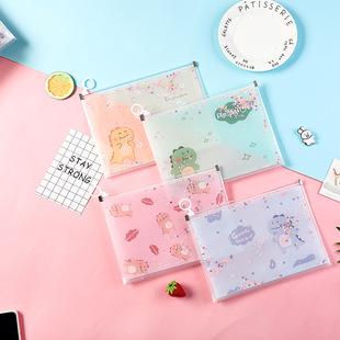 Nueva bolsa con cremallera para información de dibujos animados a4 para estudiantes de primaria, bolsa de almacenamiento para papelería para exámenes, bolsa transparente a5 con anillas para facturas