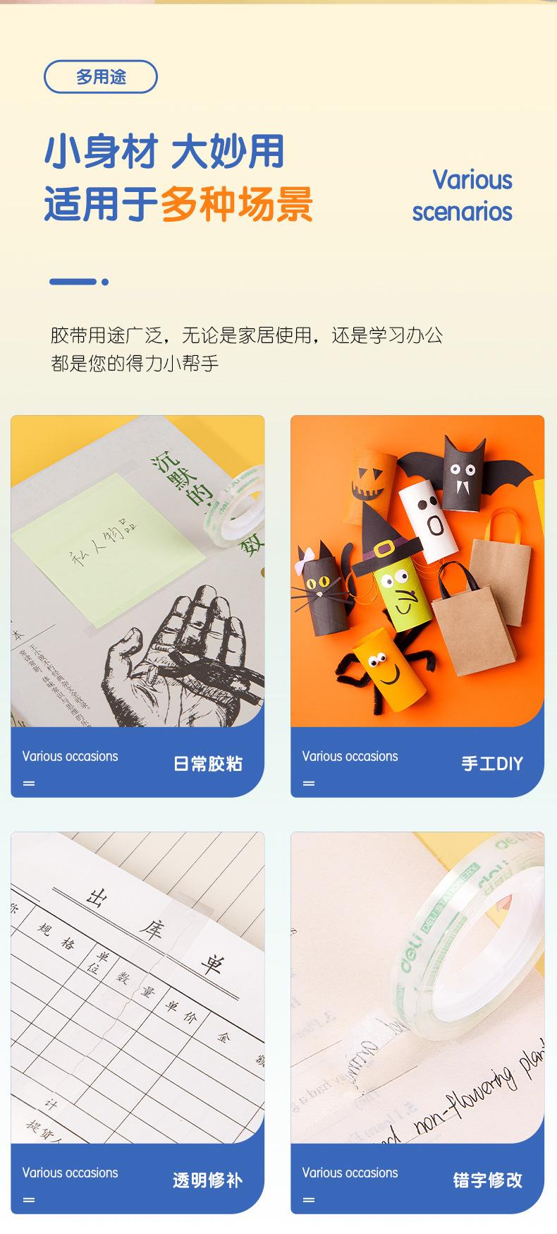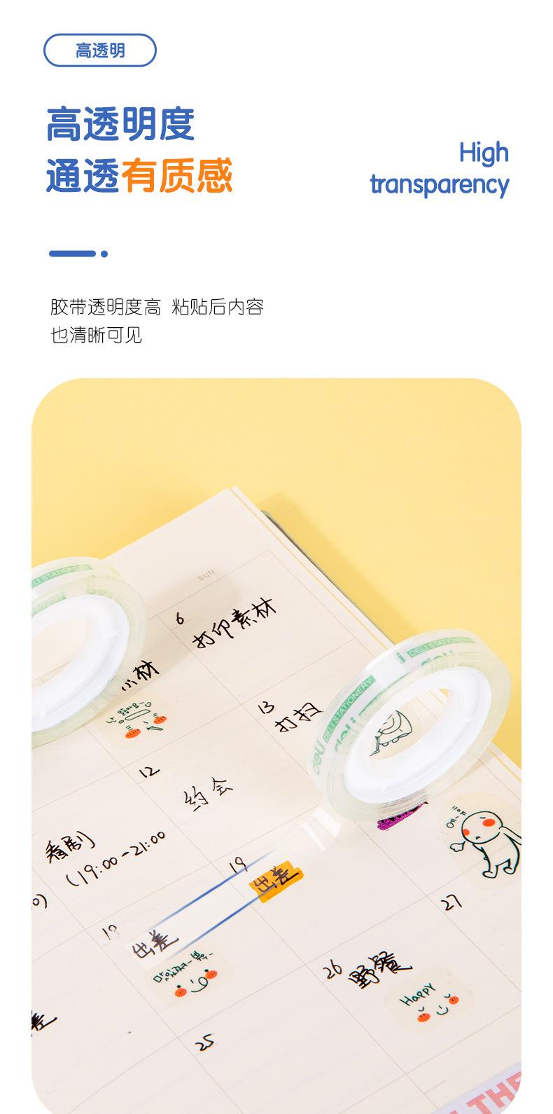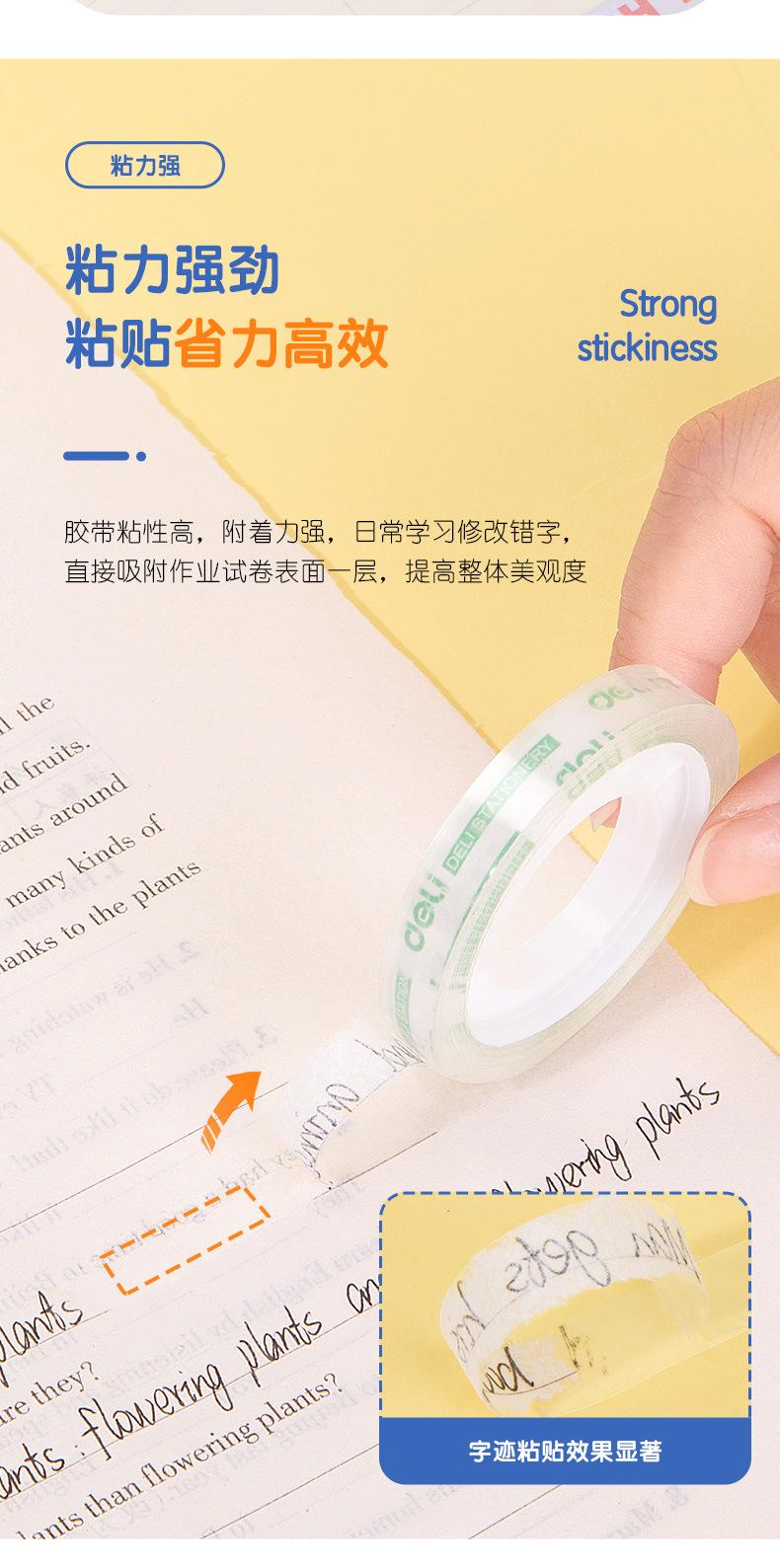 Cinta adhesiva transparente Deli 30001 para estudiantes, papelería, tareas, alterada, ancho posterior de 8 mm, 30 unidades, cinta pequeña