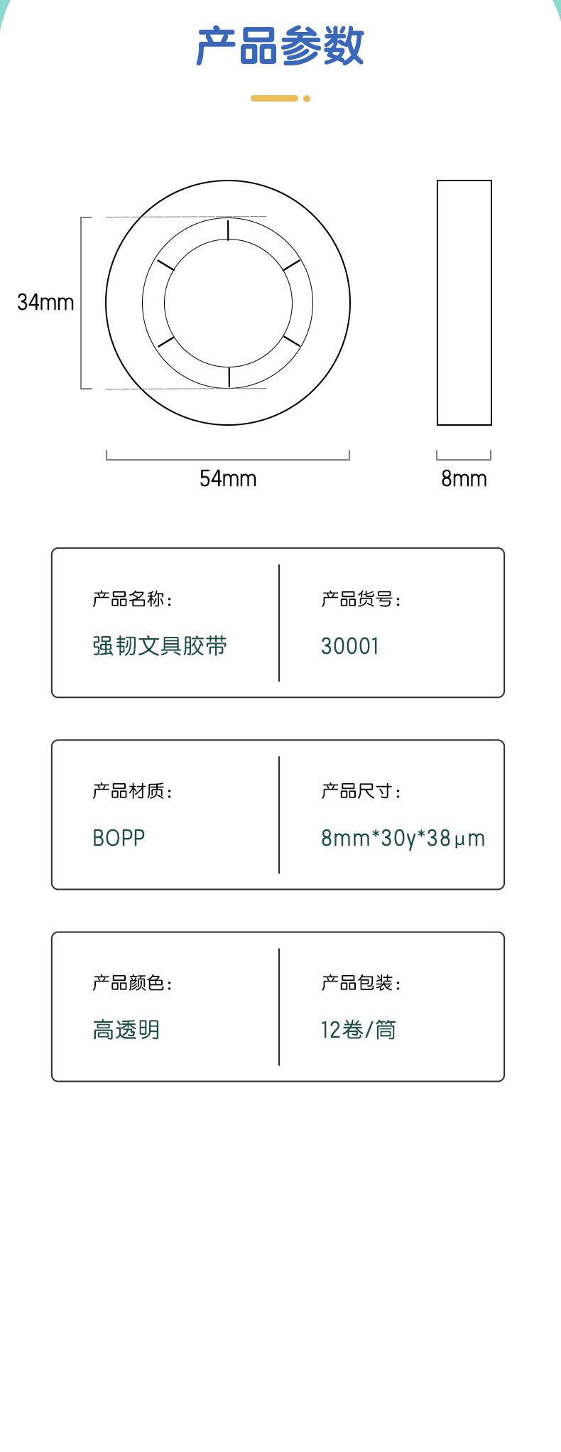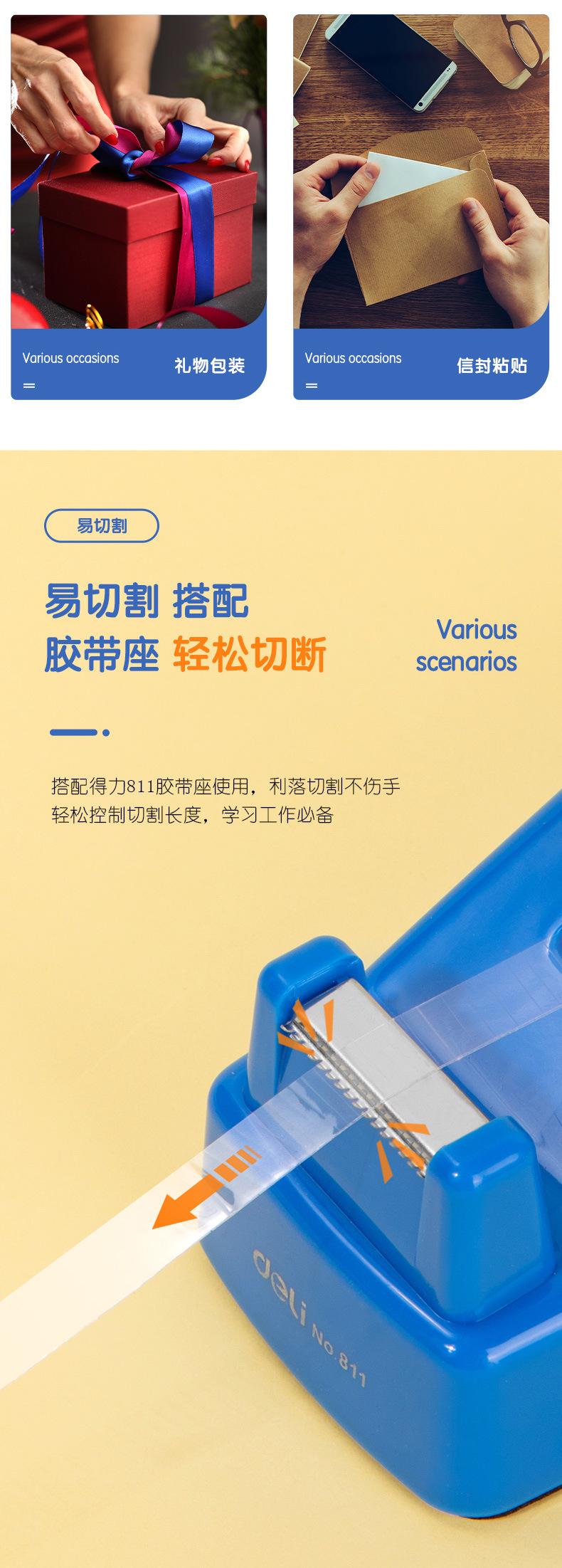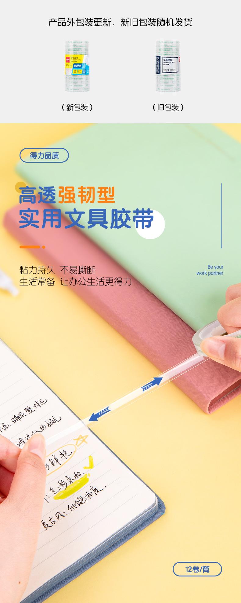 Cinta adhesiva transparente Deli 30001 para estudiantes, papelería, tareas, alterada, ancho posterior de 8 mm, 30 unidades, cinta pequeña