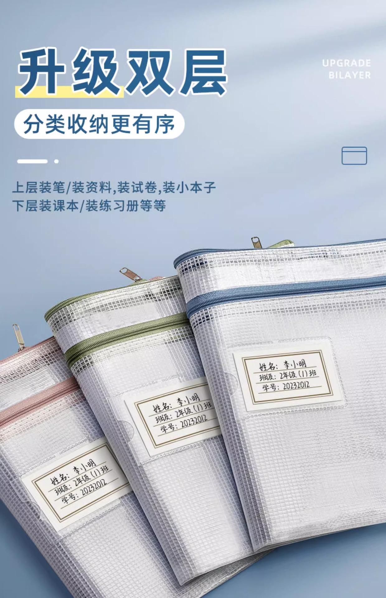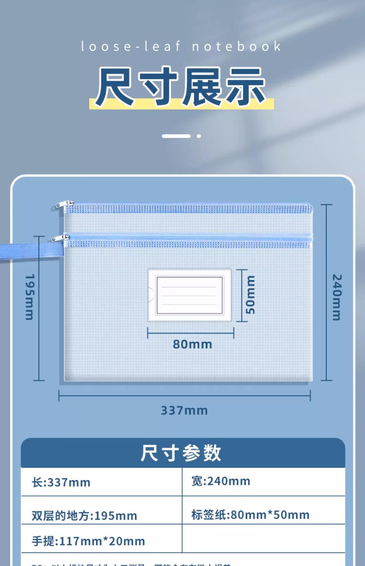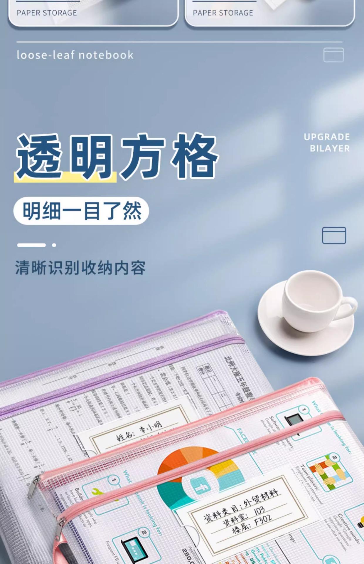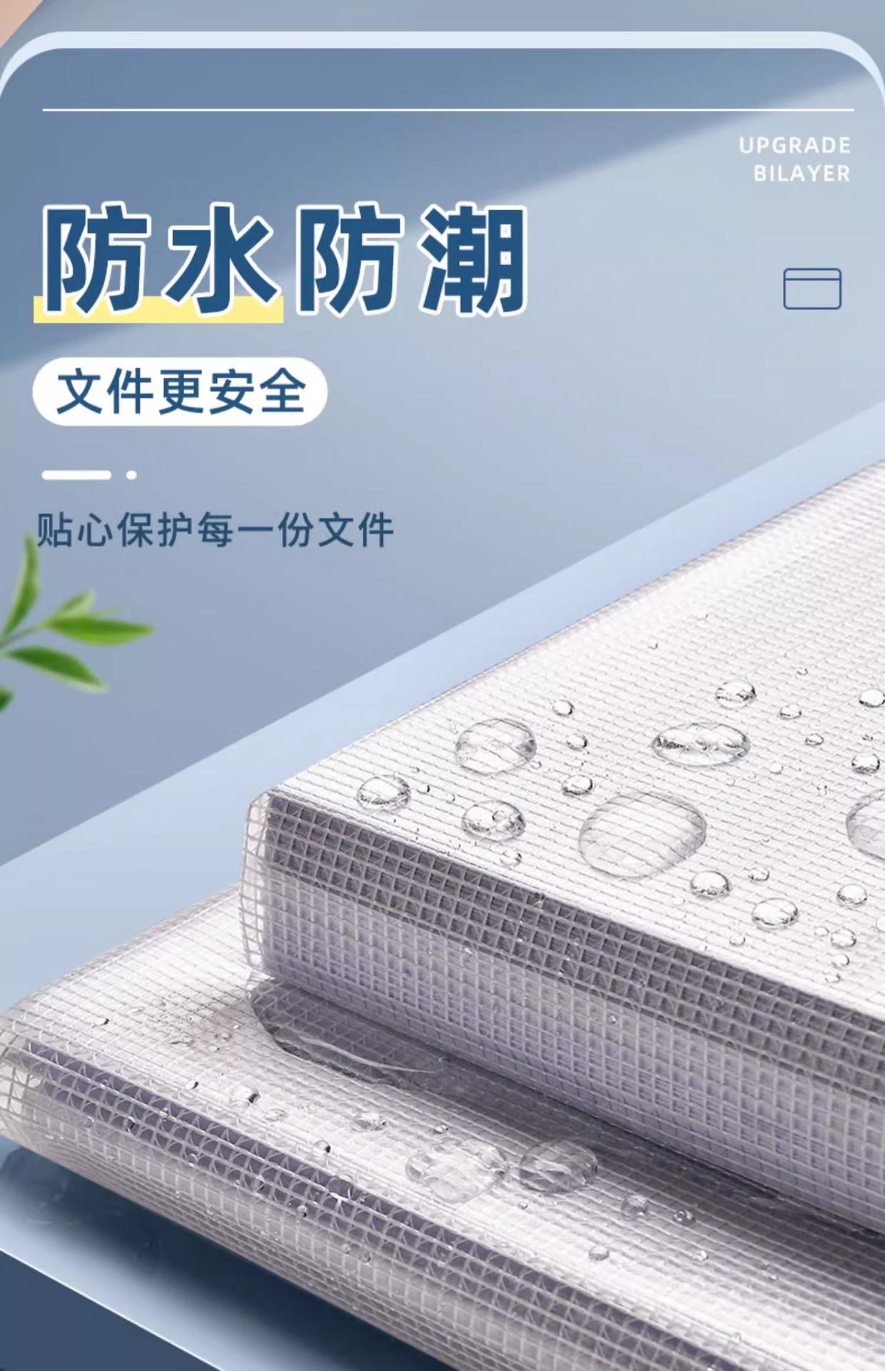 Bolsa de archivo A4 de doble capa con cremallera, transparente, impermeable, para guardar archivos, carpeta de información, bolsa de plástico para archivos