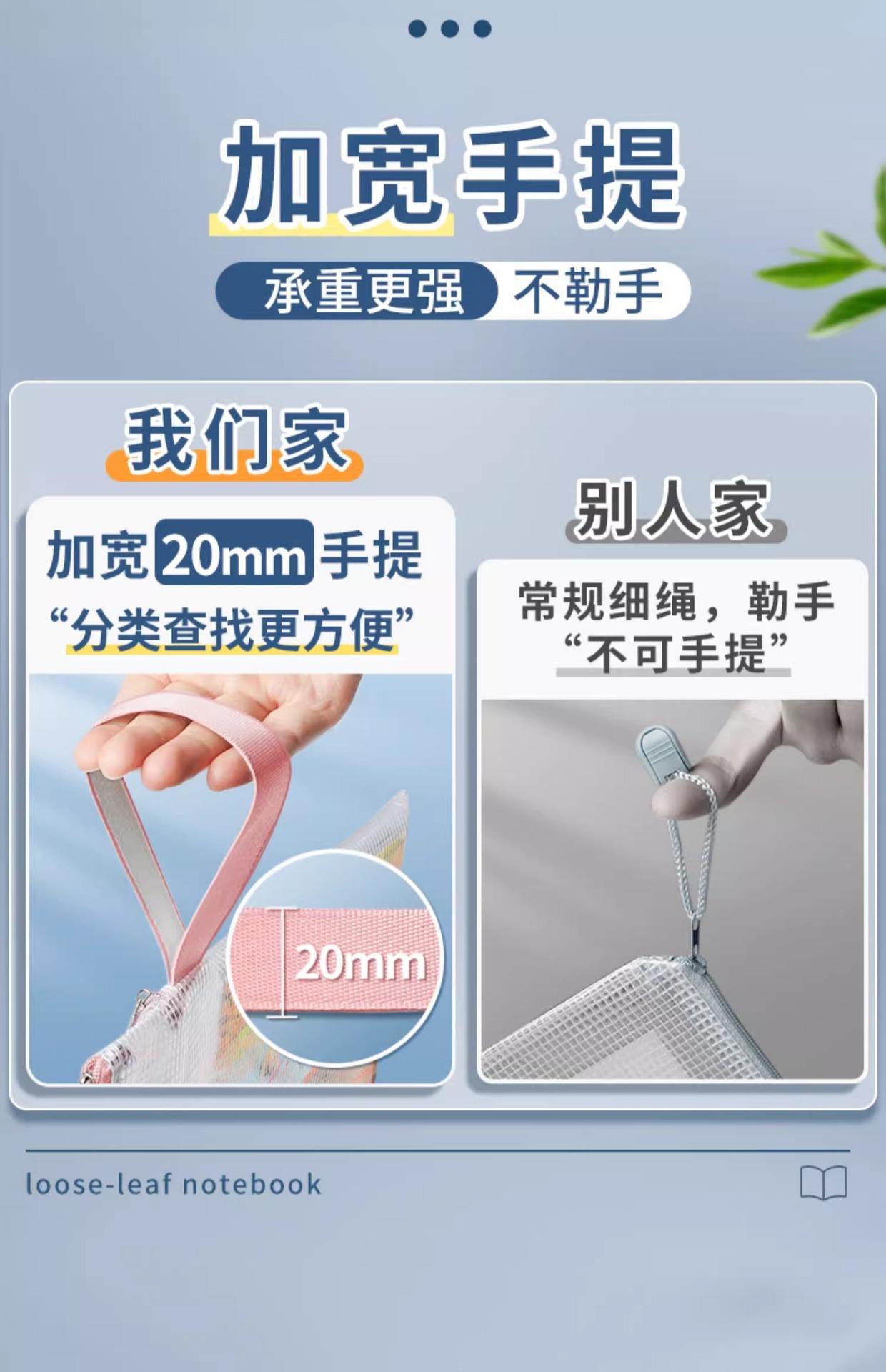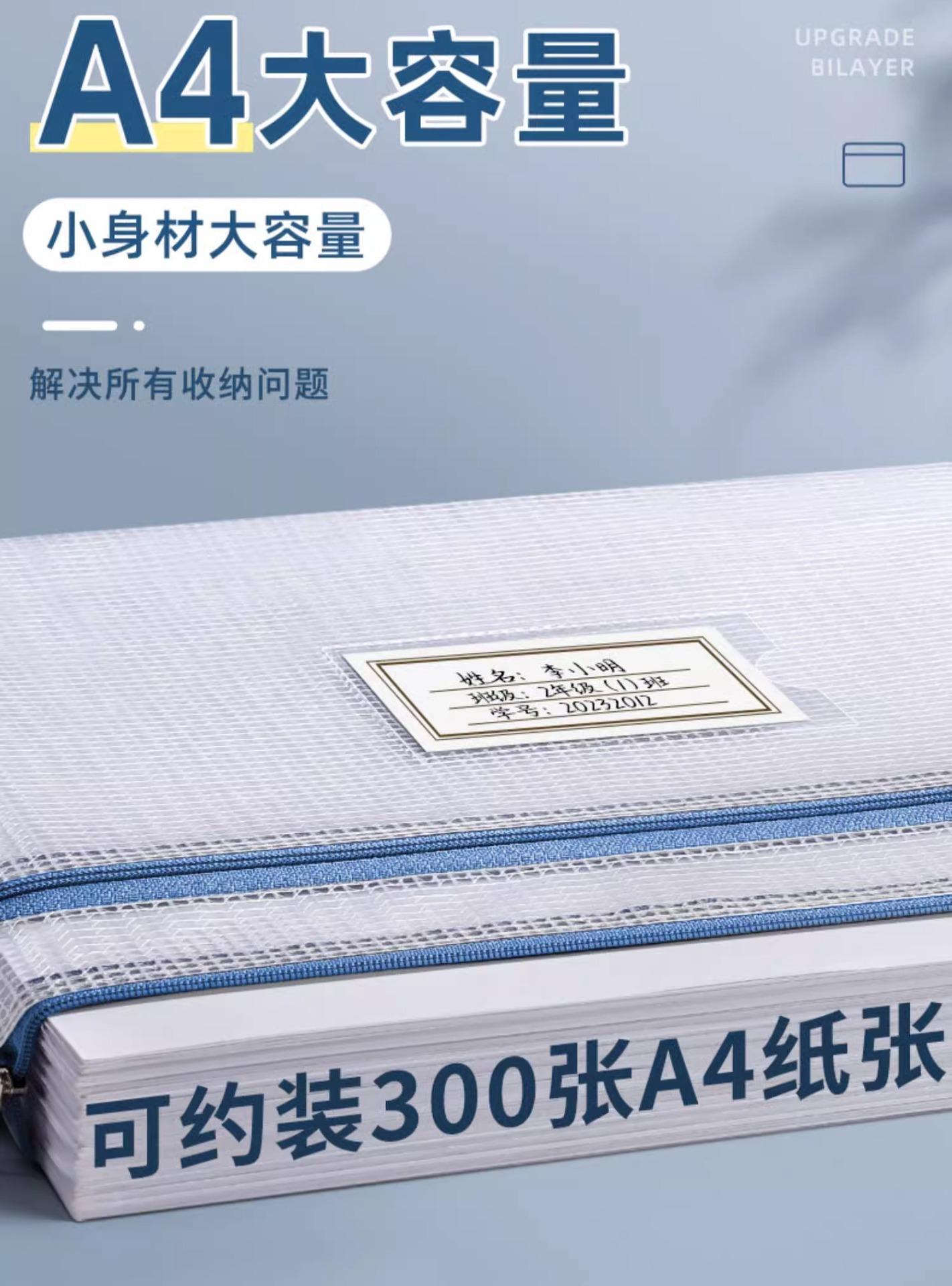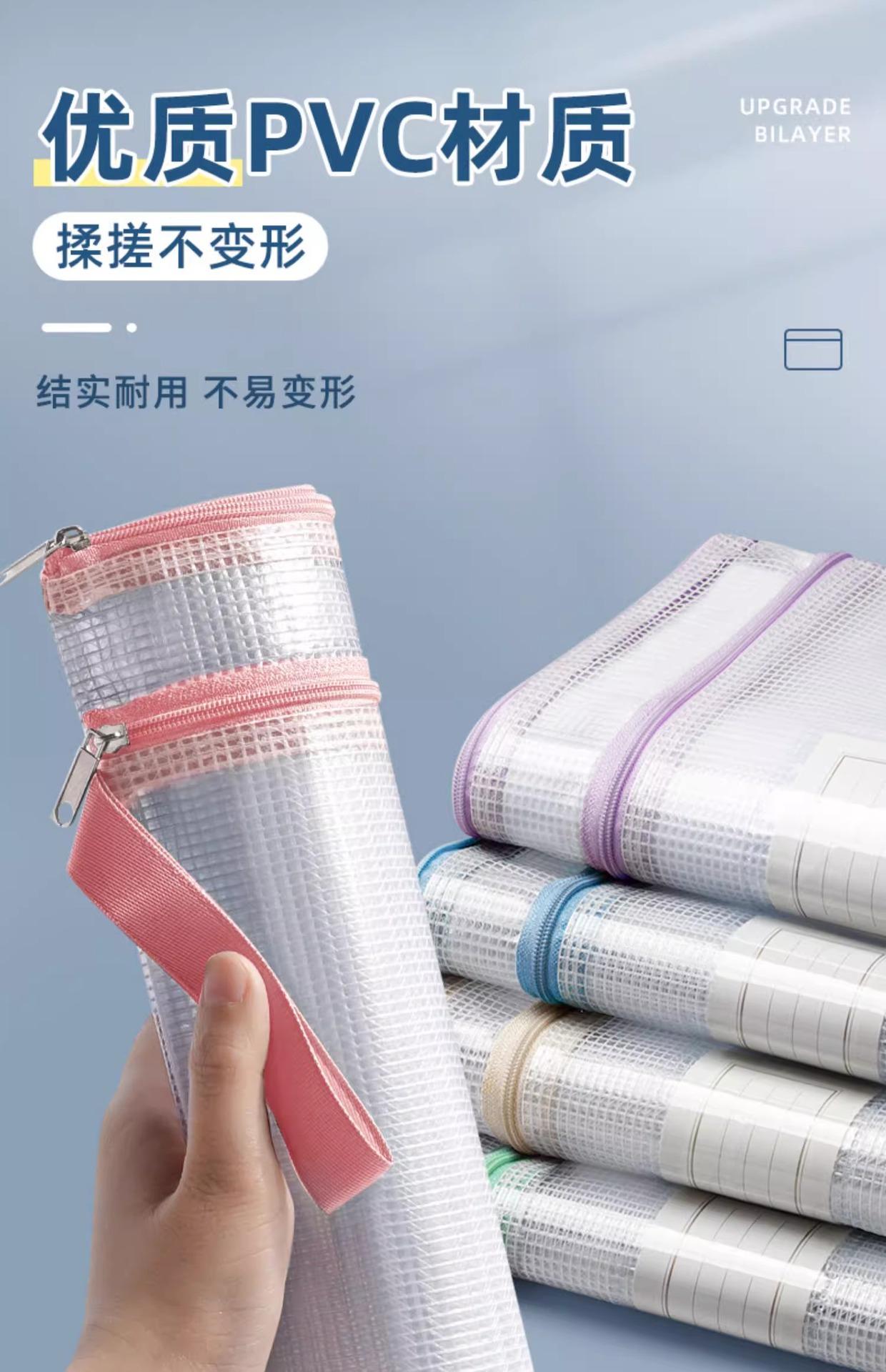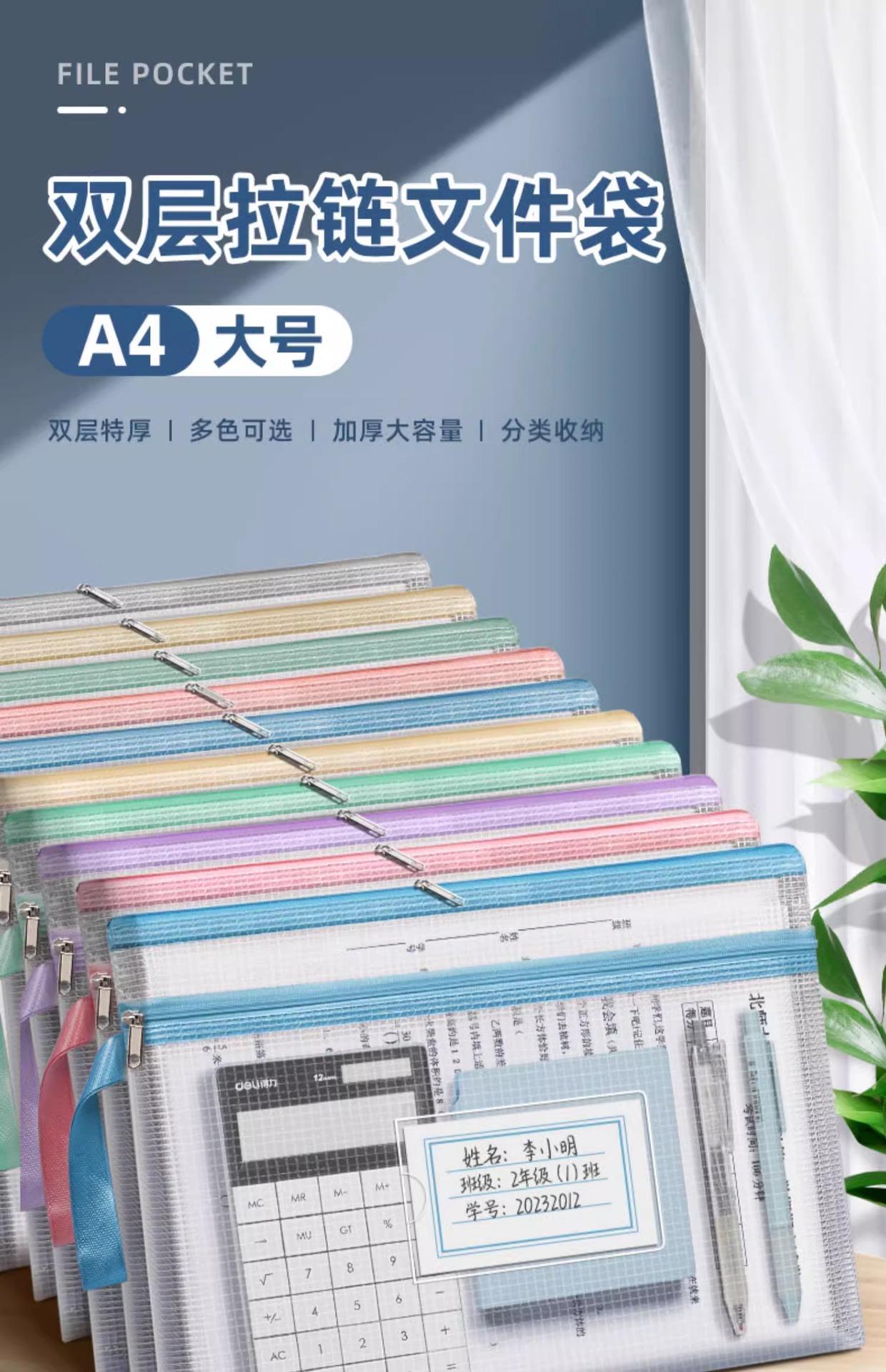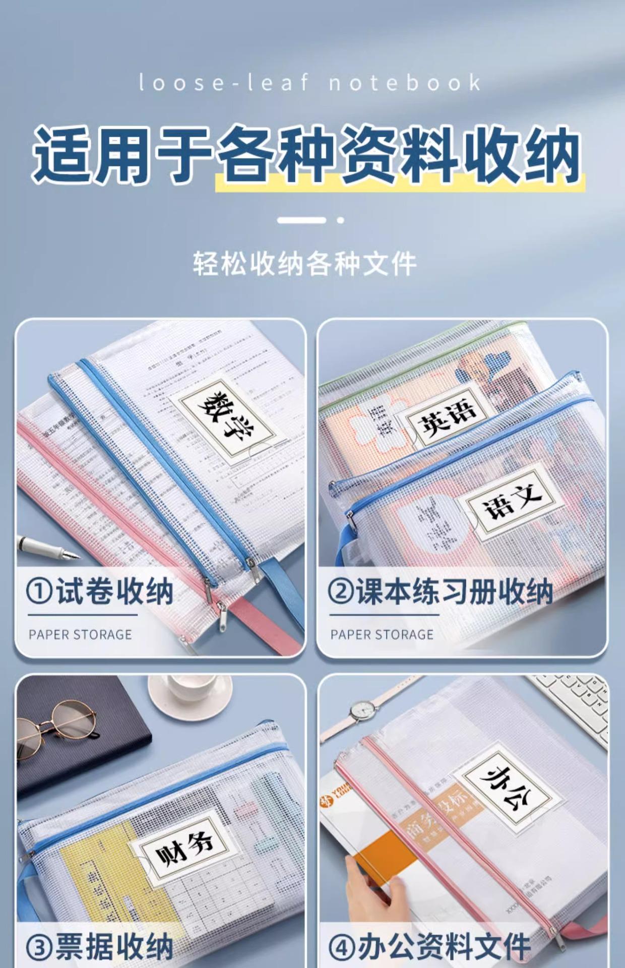 Bolsa de archivo A4 de doble capa con cremallera, transparente, impermeable, para guardar archivos, carpeta de información, bolsa de plástico para archivos