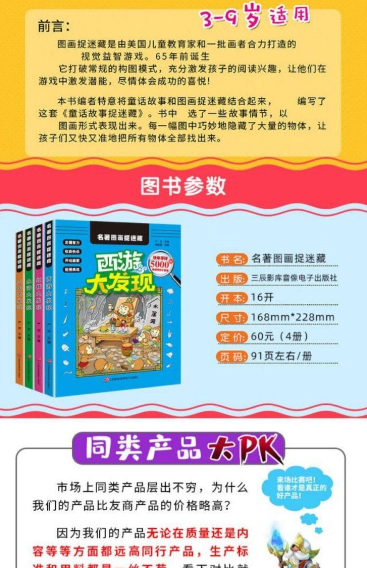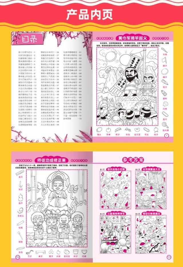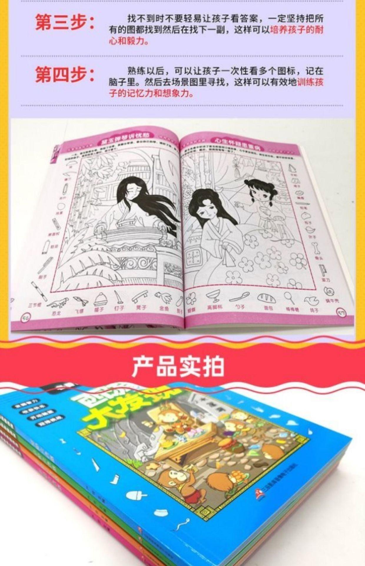 Cuatro grandes libros Tres reinos Viaje al Oeste Descubrimiento Conjunto completo de 4 imágenes ocultas Escondite y juegos de rompecabezas Libro de pintura
