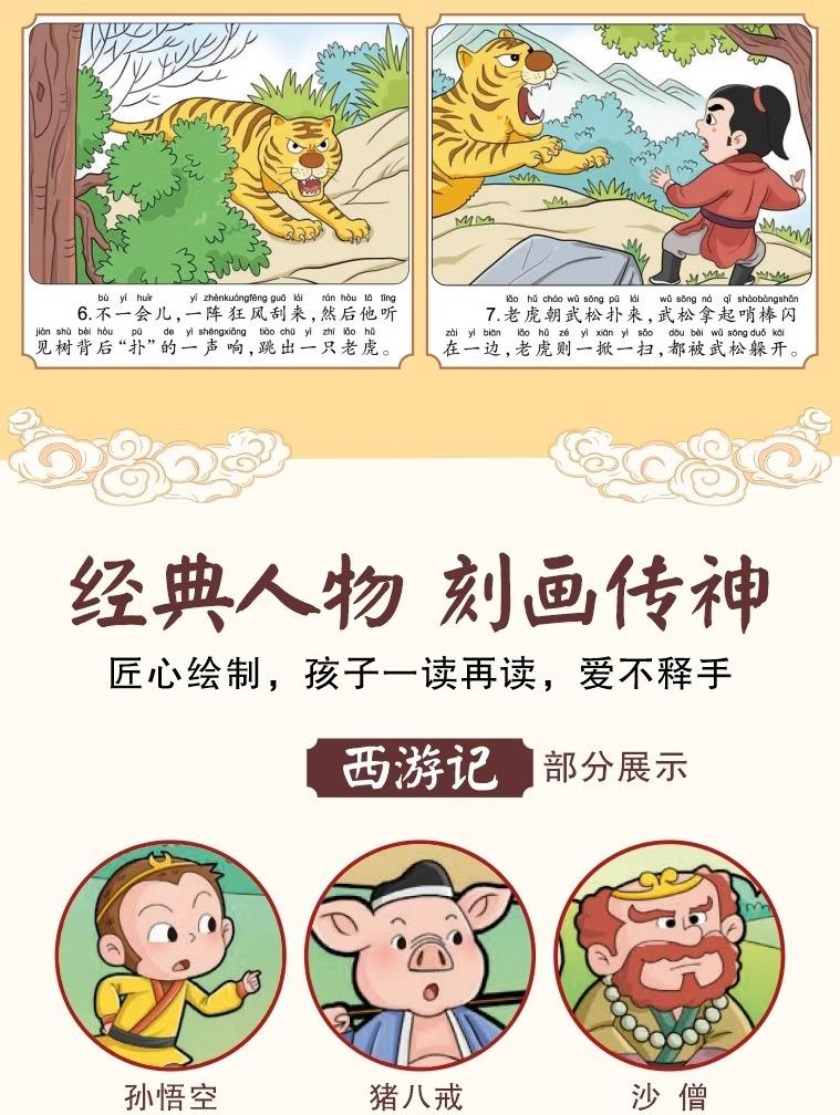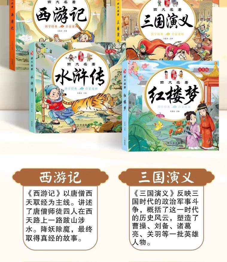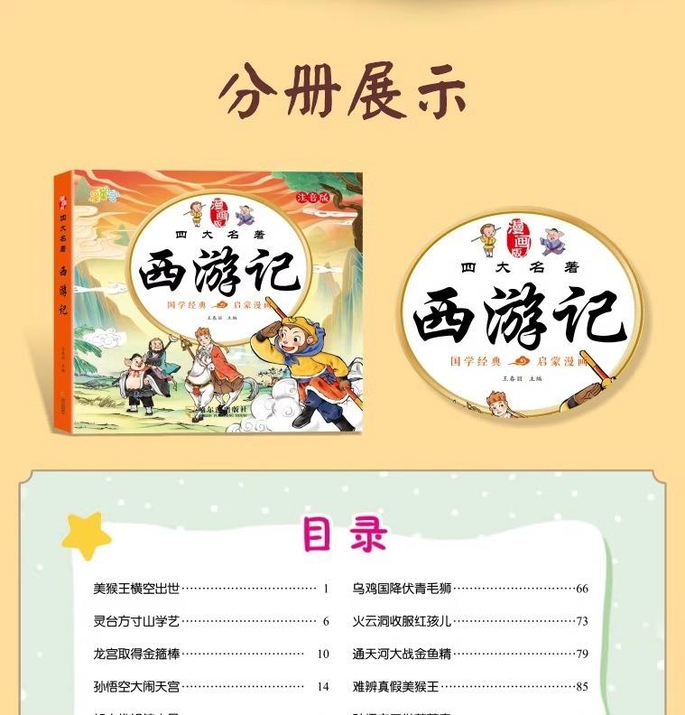 Edición de cómic de Las cuatro obras maestras para niños Viaje al Oeste Romance de los Tres Reinos A la orilla del agua Lectura extracurricular para alumnos Libros de cuentos