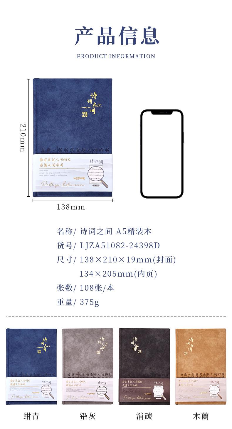 Lianhua Papelería Poesía Texto Cuaderno de Línea Horizontal A5 Retro Guofeng Manual Libreta Simple