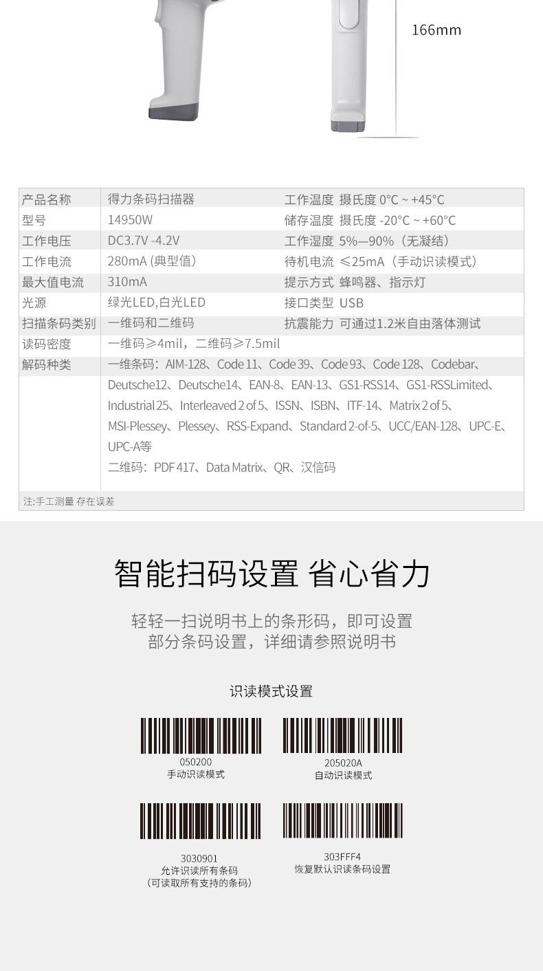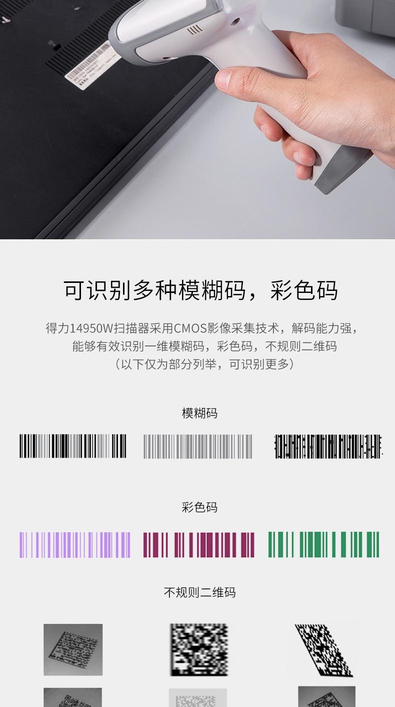 Escáner inalámbrico Deli 14950w, escáner de código de barras para supermercados Express, escaneo de código QR unidimensional