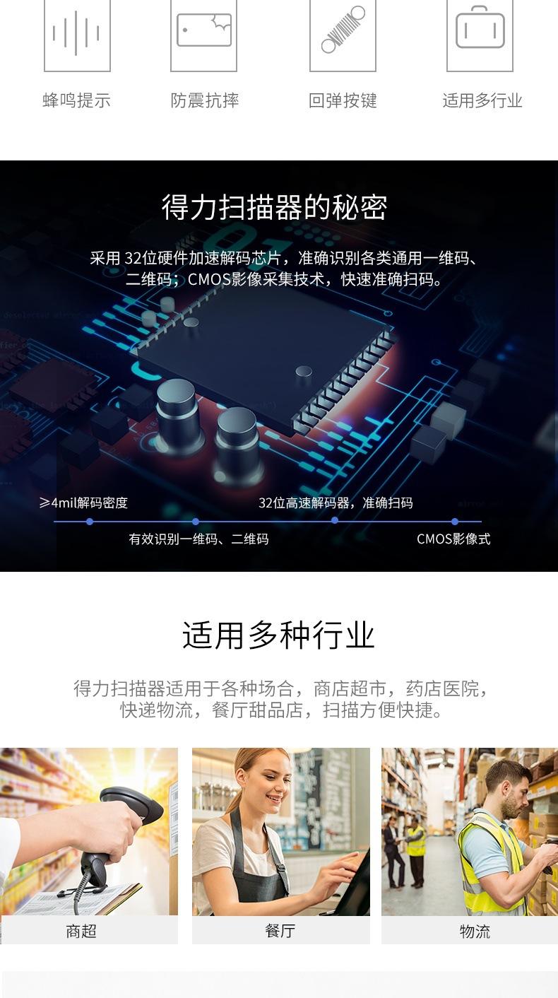 Compra Escáner inalámbrico Deli 14950w, escáner de código de barras para supermercados Express, escaneo de código QR unidimensional al por mayor en Joom.pro