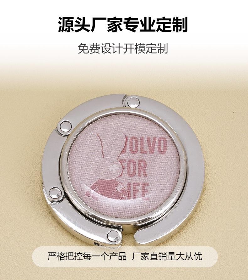 Compra Los fabricantes producen gancho de escritorio plegable de metal para colgar bolsos con colgante de conejo móvil para bolso de oficina al por mayor en Joom.pro