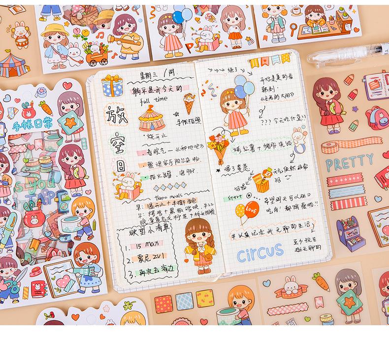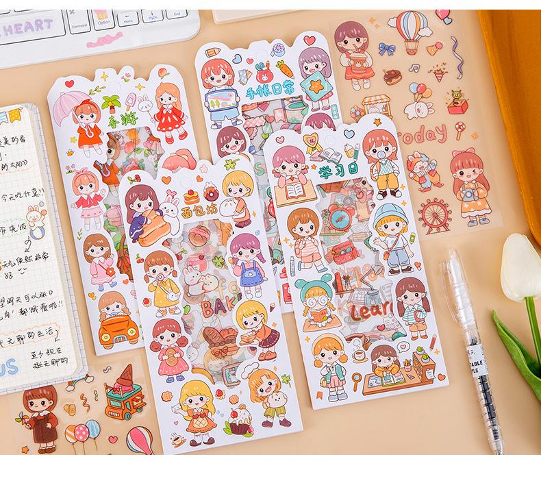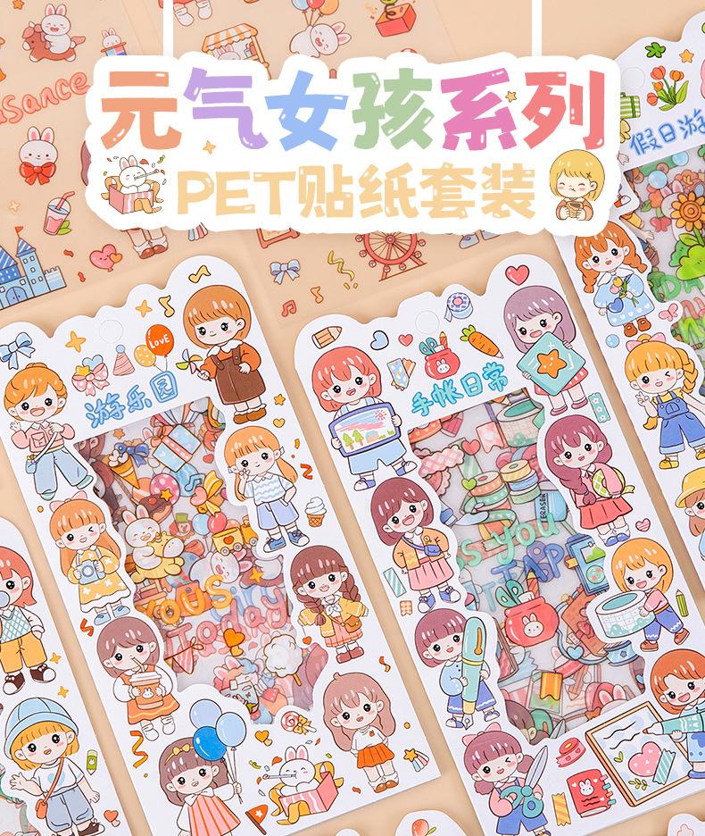 Pegatina transparente impermeable para mascotas Vitality Girl, para manualidades, para diario, decoración, con dibujos animados de chica linda