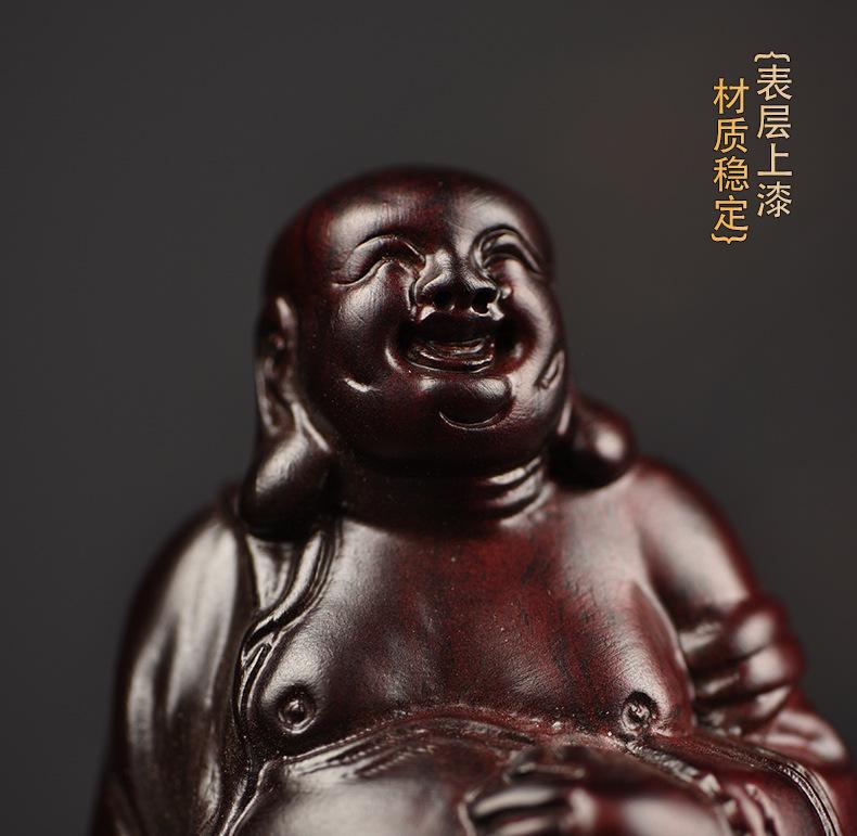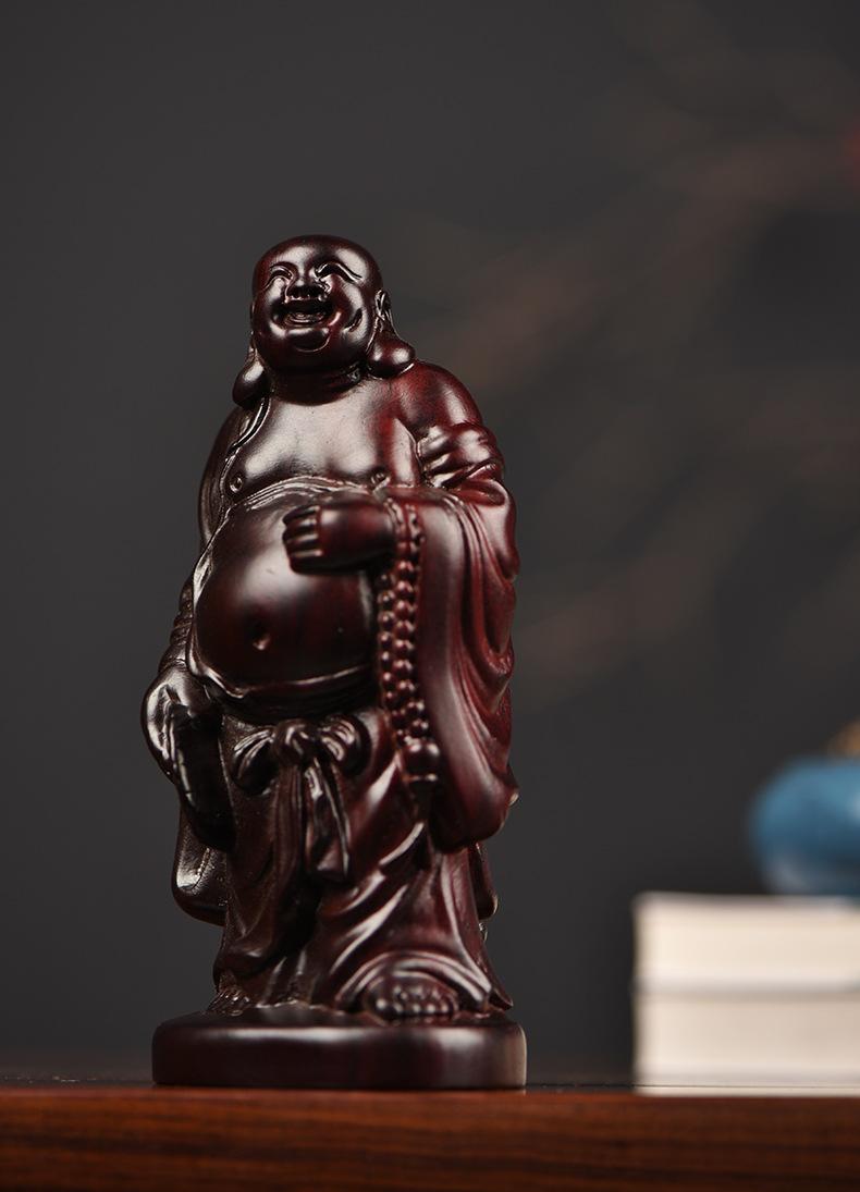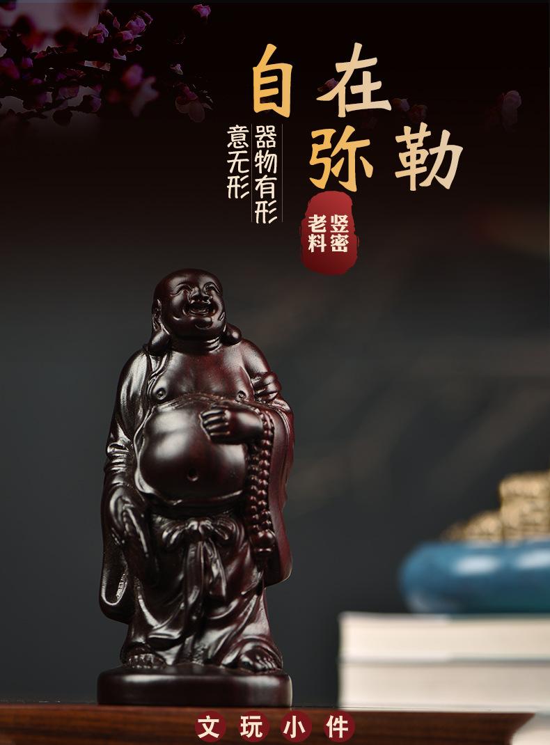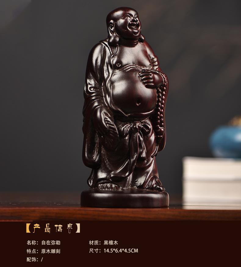 Adornos artesanales de talla de madera Maitreya sin ébano, Buda sonriente abierto, decoración de escritorio para el hogar, sala de estar, piezas pequeñas
