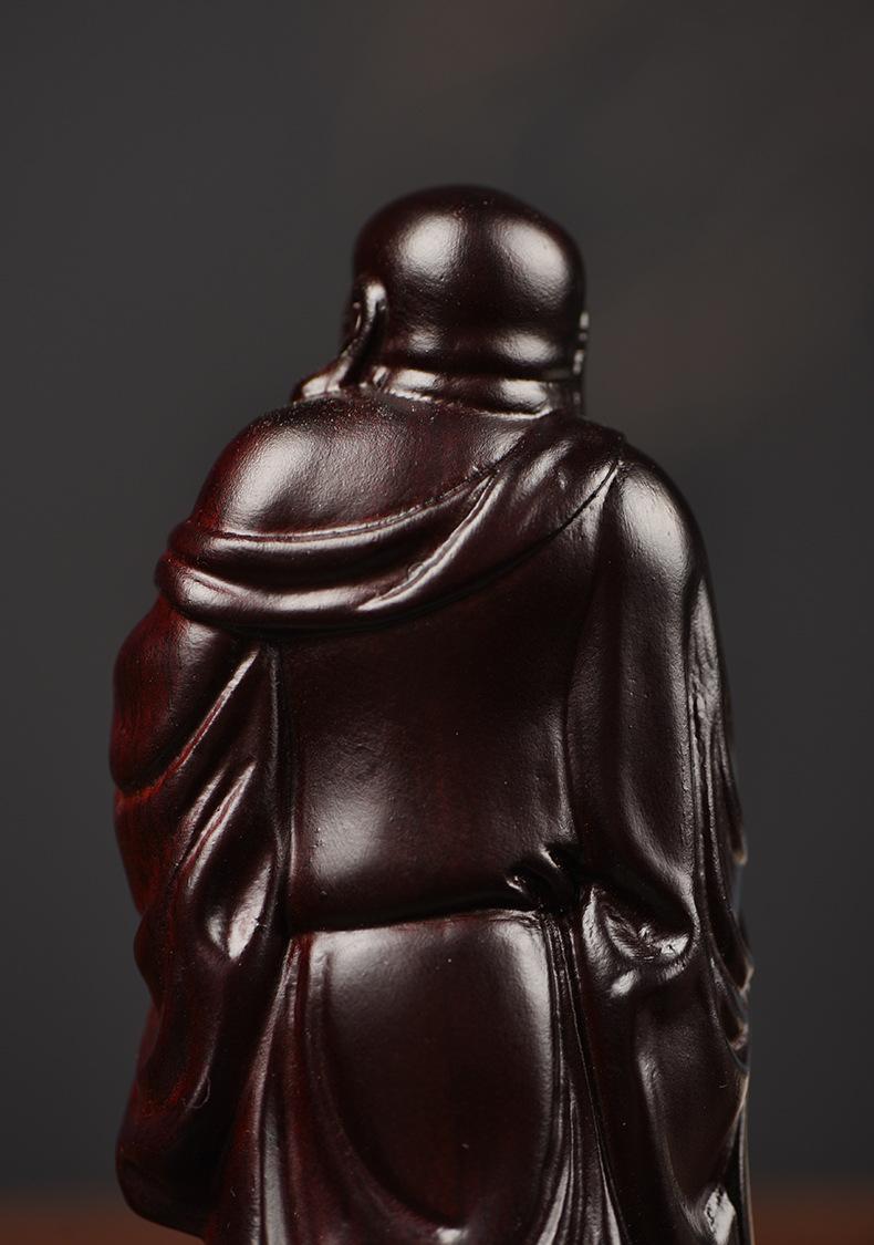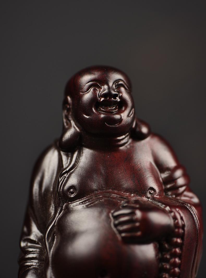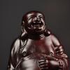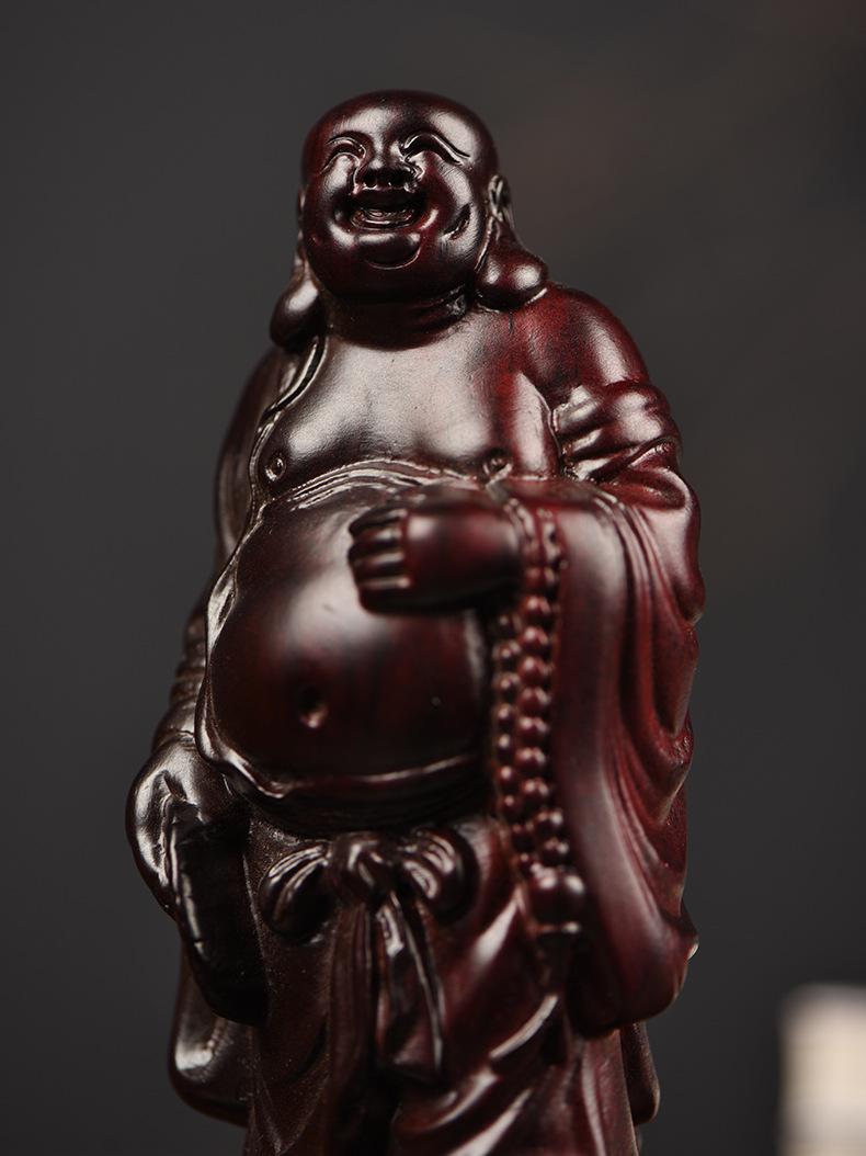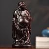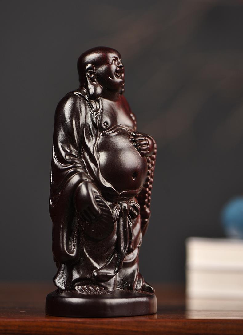 Adornos artesanales de talla de madera Maitreya sin ébano, Buda sonriente abierto, decoración de escritorio para el hogar, sala de estar, piezas pequeñas