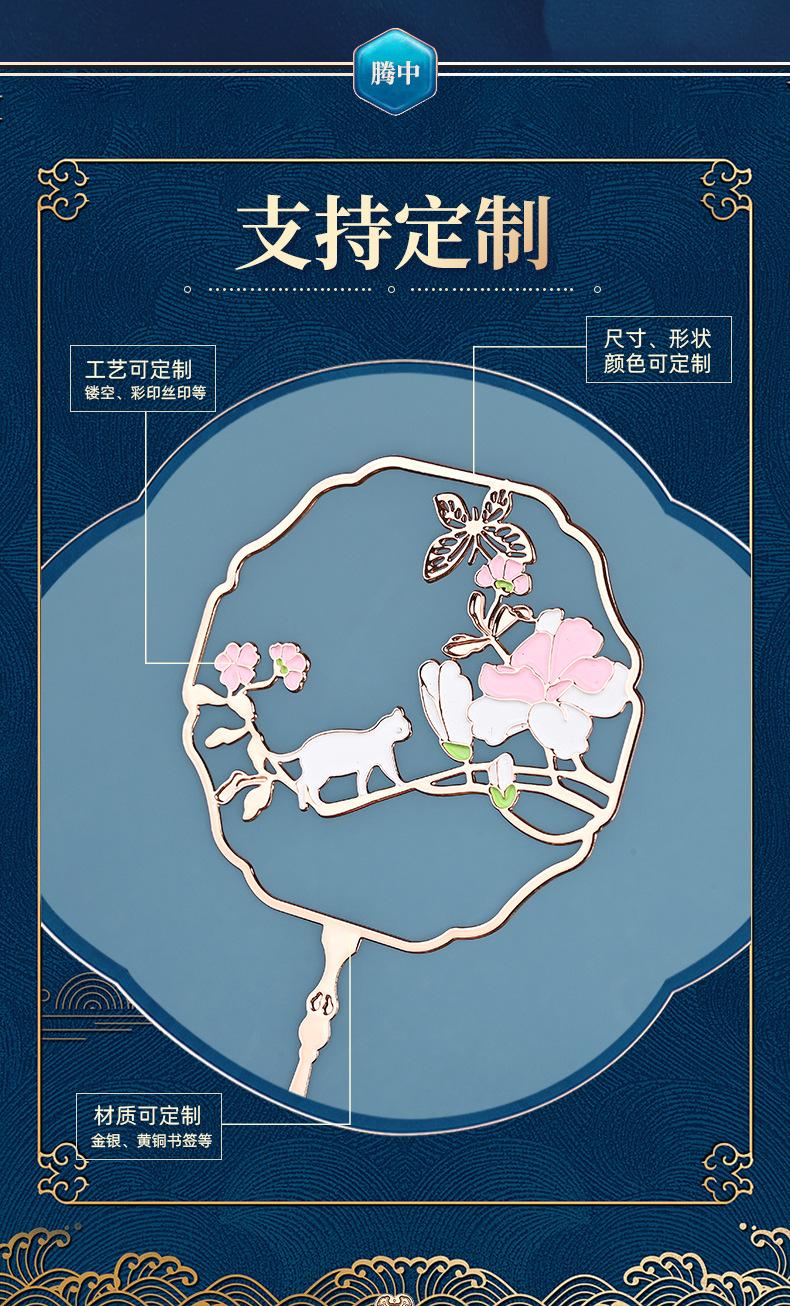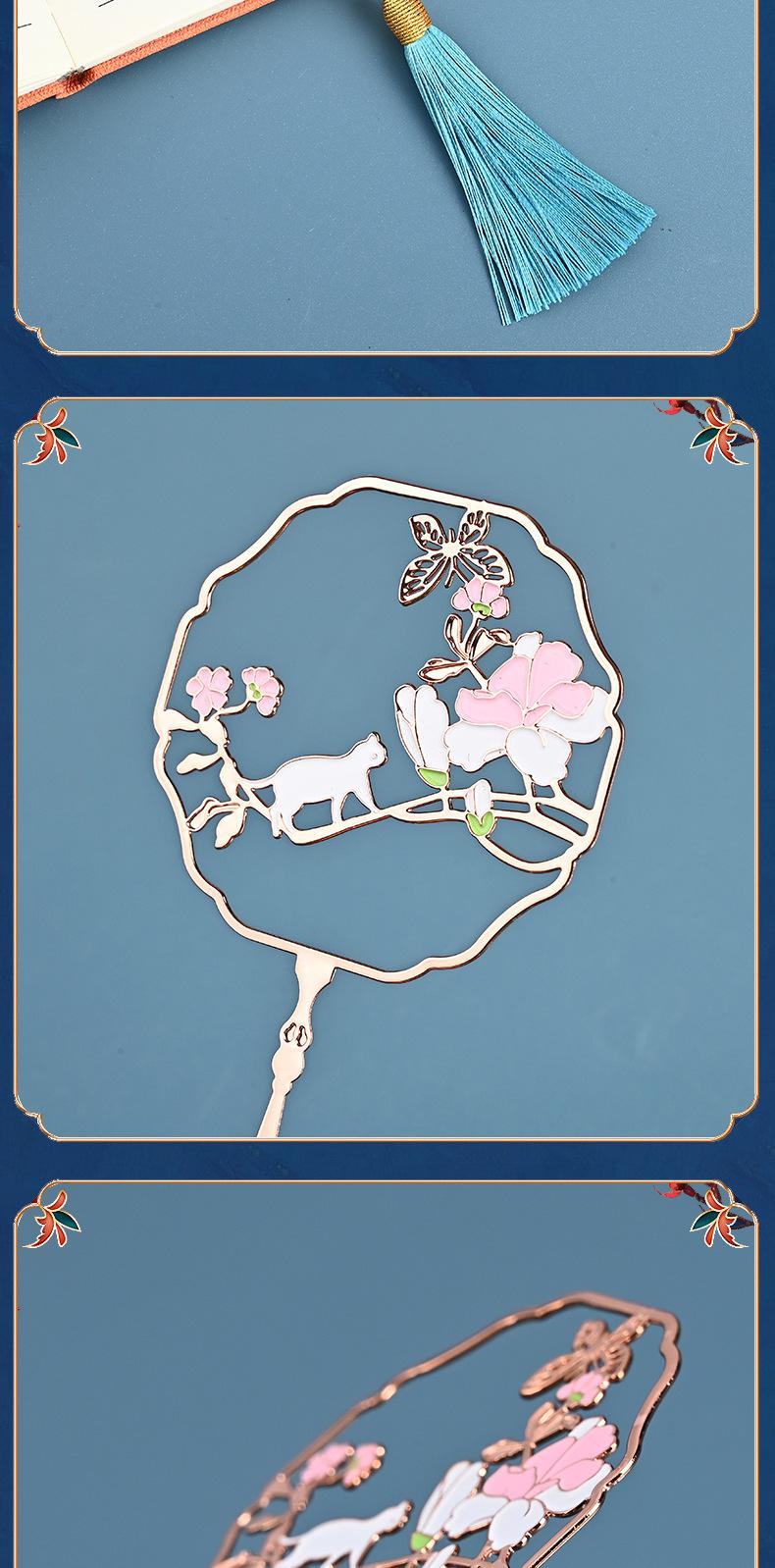 Lindo Separador de Metal de Gato Personalizado Ciudad Prohibida Cultural y Creativo Estilo Clásico Chino Recortado Separador Marcador Abanico de Metal