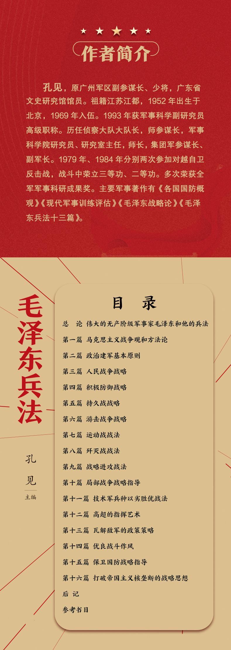 Kong Jian, ex subjefe de estado mayor y general de división de la Región Militar de Guangzhou, y miembro de la Academia Provincial de Literatura e Historia de Guangdong. Nació en Beijing en 1952 y se unió al ejército en 1969. En 1993, recibió el título superior de investigador asociado de ciencia militar. Sirvió como capitán de la brigada de reconocimiento, jefe de estado mayor de la división, investigador y director de la sala de investigación de la Academia de Ciencias Militares, comandante de división, jefe de estado mayor del ejército de grupo y subcomandante del ejército. Participó en los contraataques de autodefensa contra Vietnam dos veces en 1979 y 1984 respectivamente, y obtuvo el mérito de tercera clase y el mérito de segunda clase en la batalla. Ha ganado el premio al logro de investigación científica militar de todo el ejército muchas veces. Sus principales obras militares incluyen "Resumen de la Defensa Nacional de Varios Países", "Evaluación del Entrenamiento Militar Moderno", "Teoría Estratégica de Mao Zedong" y "Trece Artículos de Mao Zedong sobre el Arte de la Guerra".