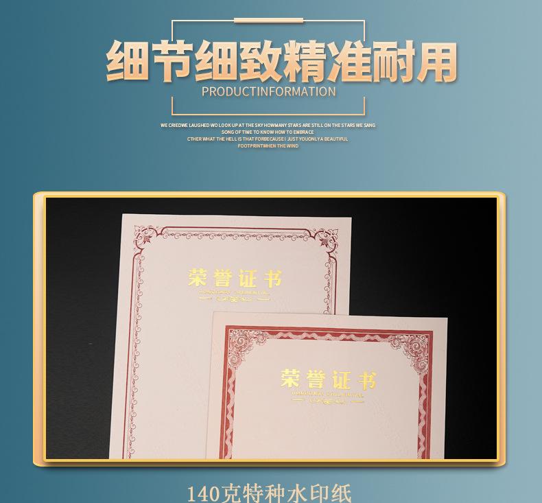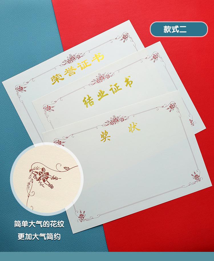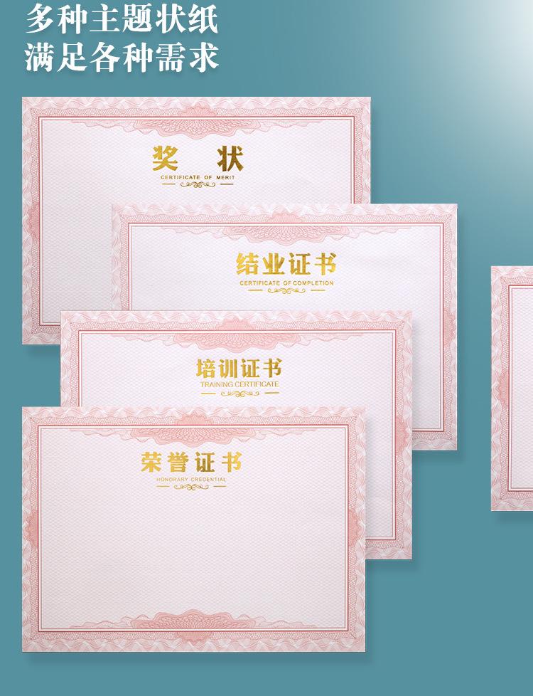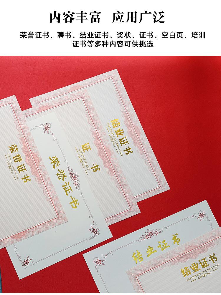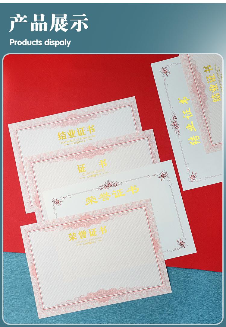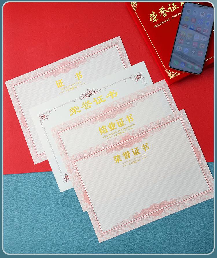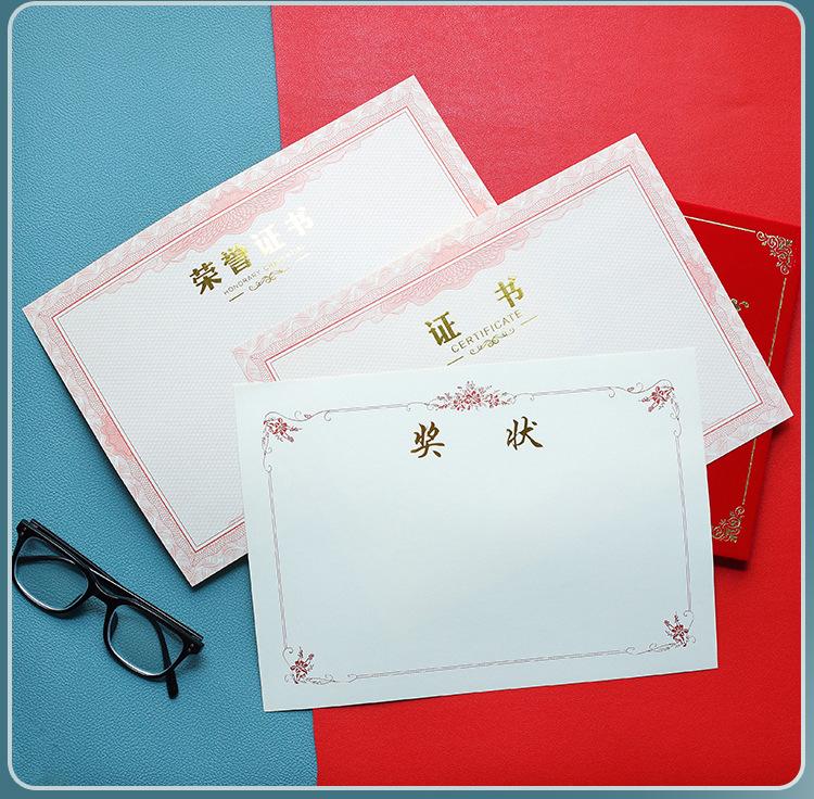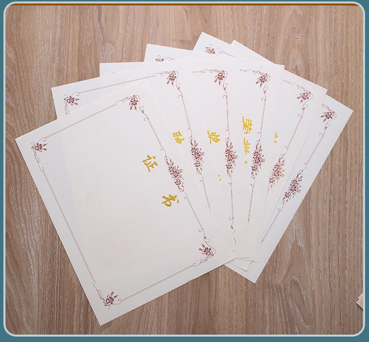Papel de premio honorífico A4 con dorado engrosado, carta de graduación, certificado de formación, estudiantes de escuela primaria, página central en blanco, hecho a medida