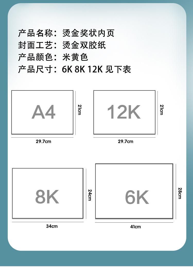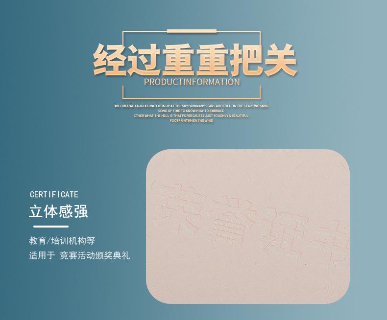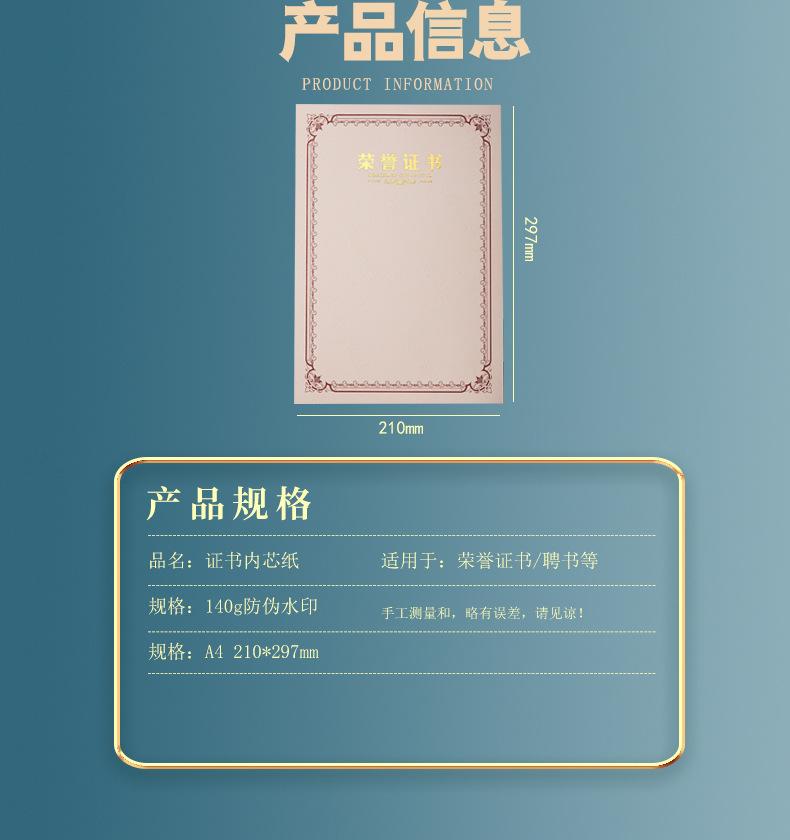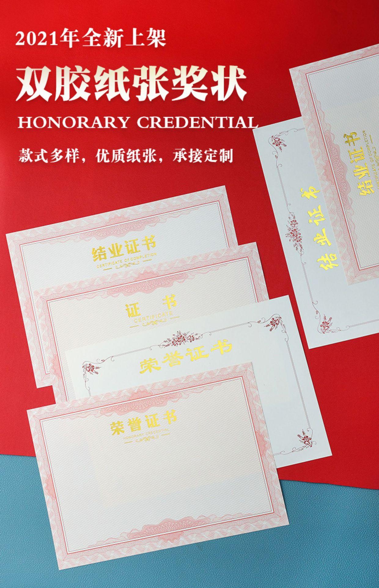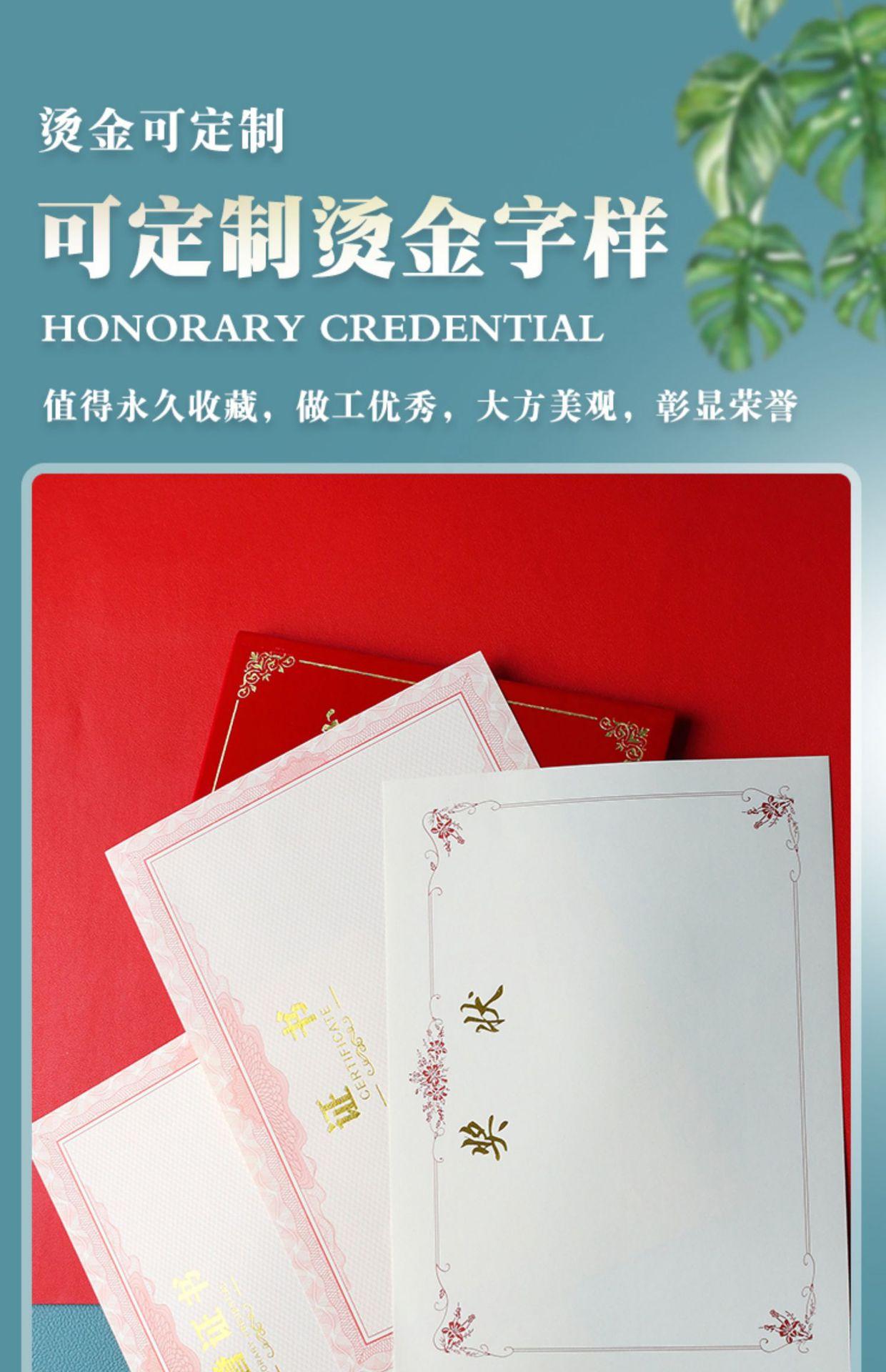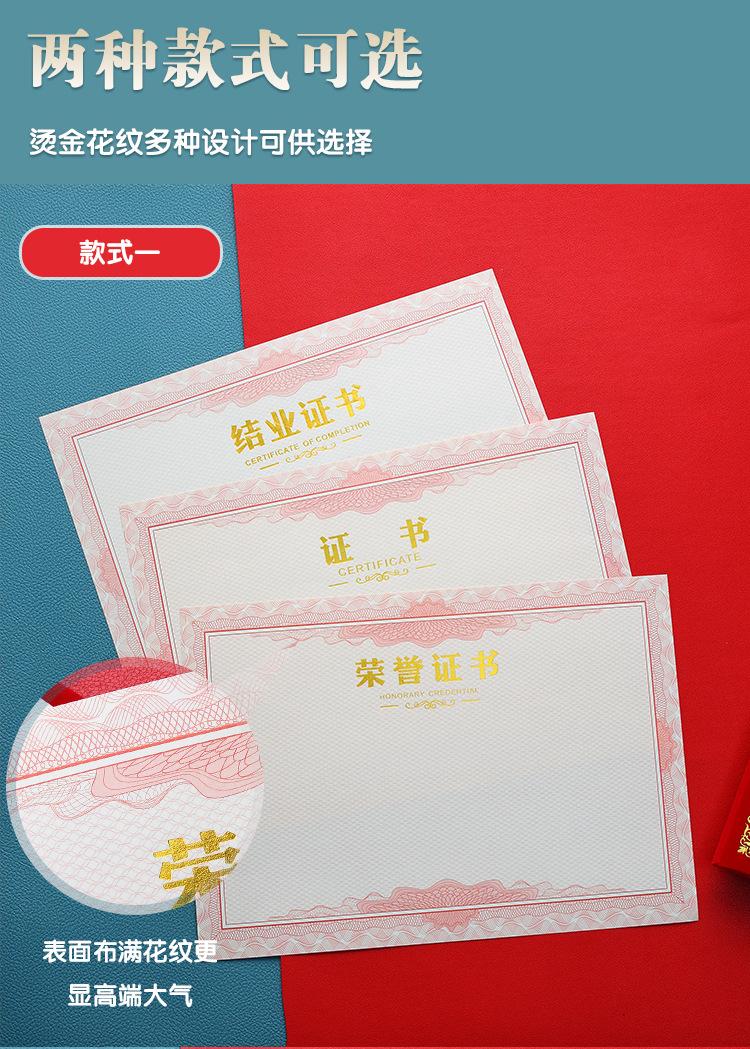 Papel de premio honorífico A4 con dorado engrosado, carta de graduación, certificado de formación, estudiantes de escuela primaria, página central en blanco, hecho a medida