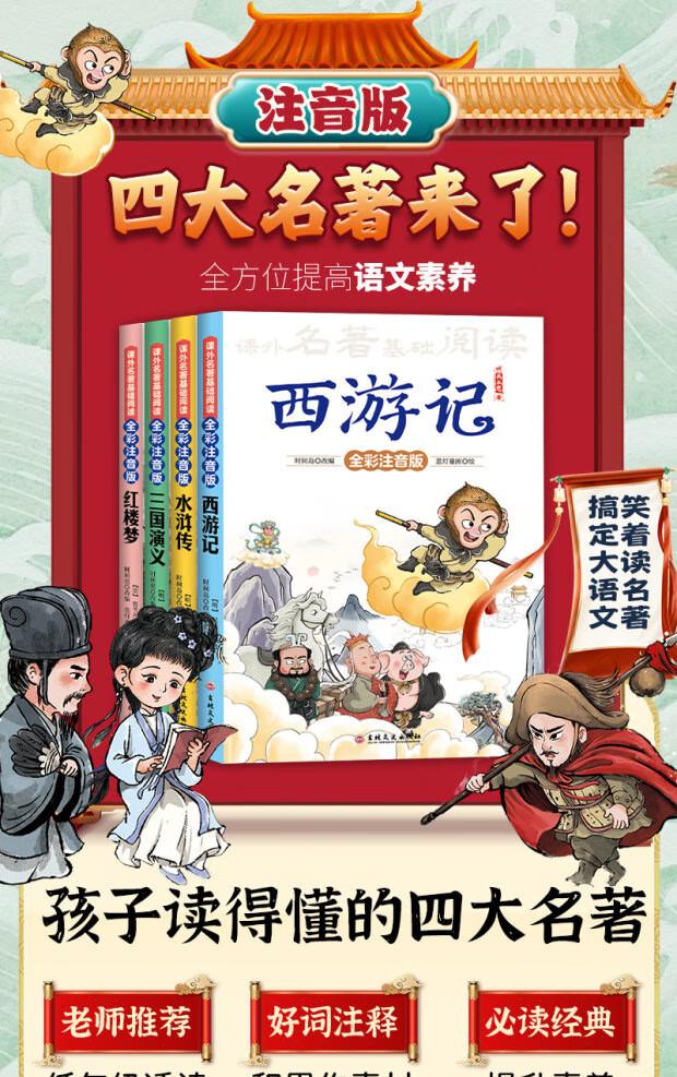 Cuatro obras maestras Versión fonética original genuina del alumno Viaje al Oeste Romance de los Tres Reinos A la orilla del agua Sueño de las mansiones rojas Versión infantil