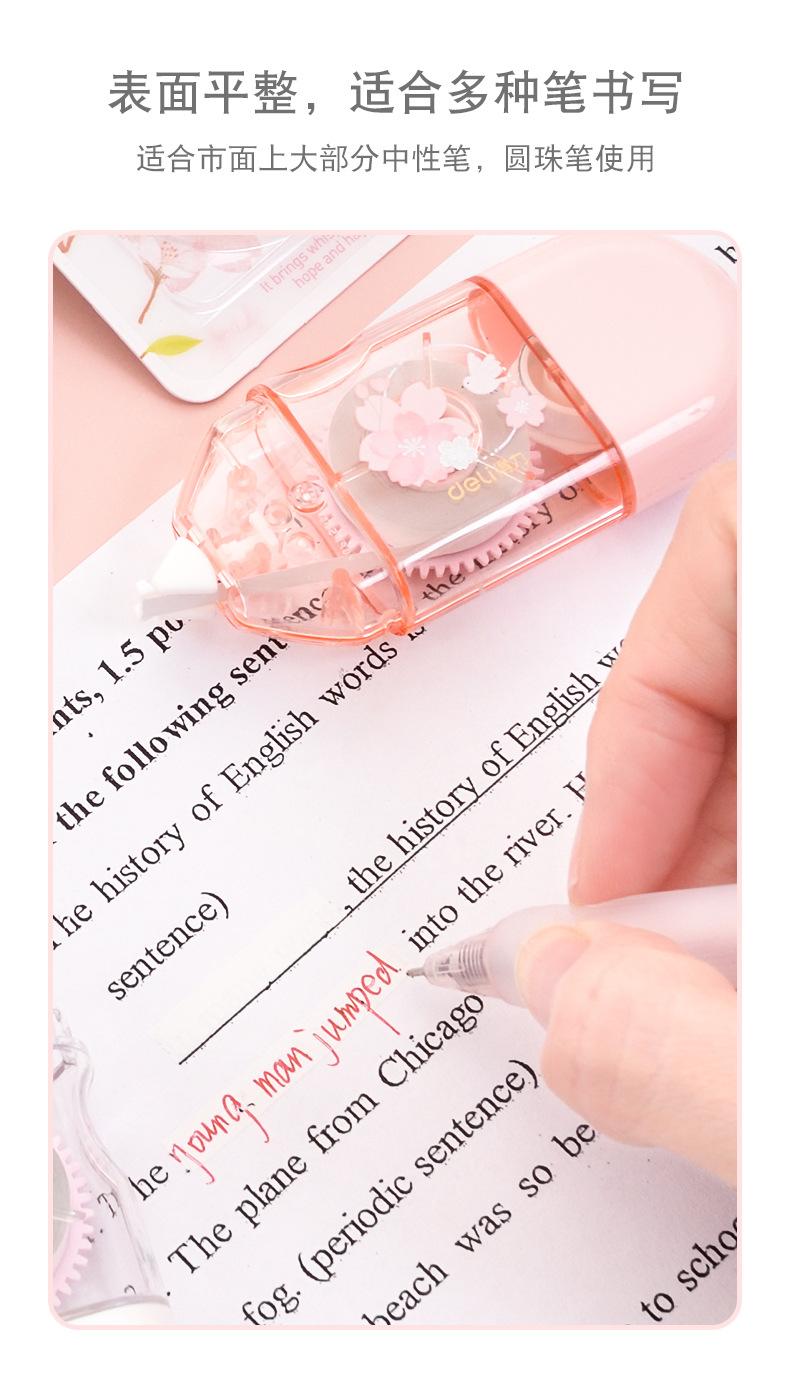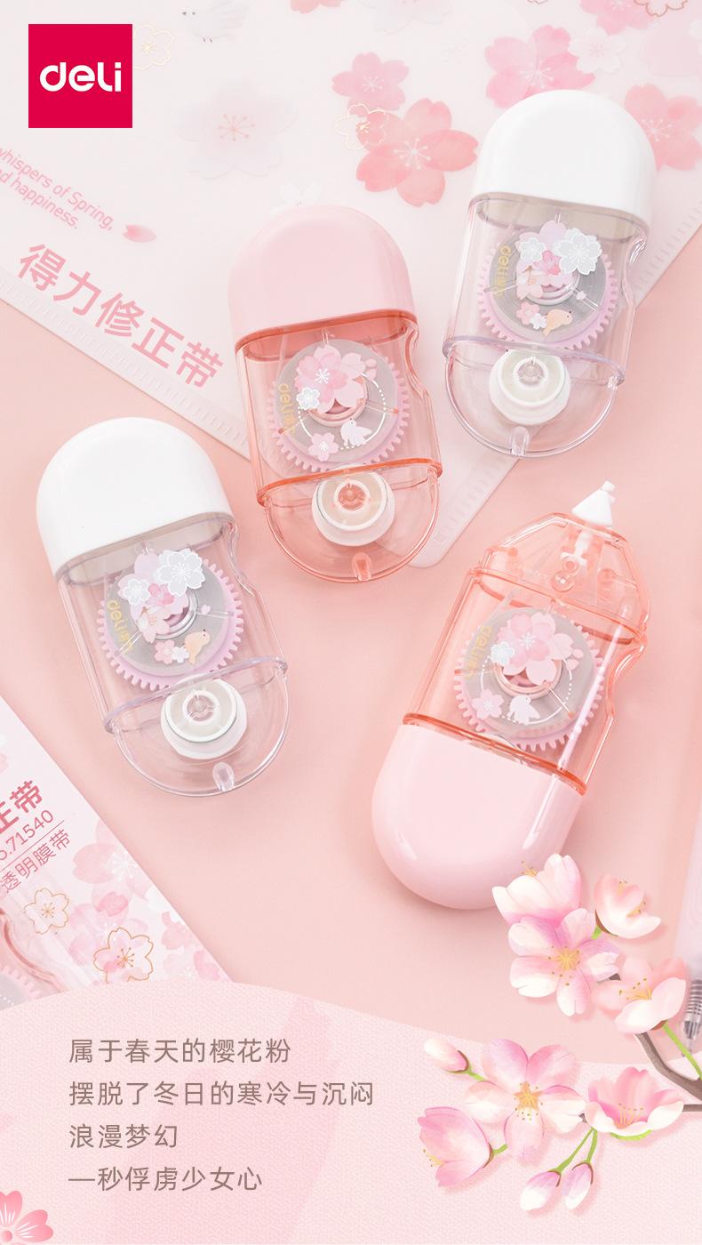 Cinta correctora Deli Cherry Blossom, bonita, portátil, pequeña y fresca, de gran capacidad, para estudiantes 71540