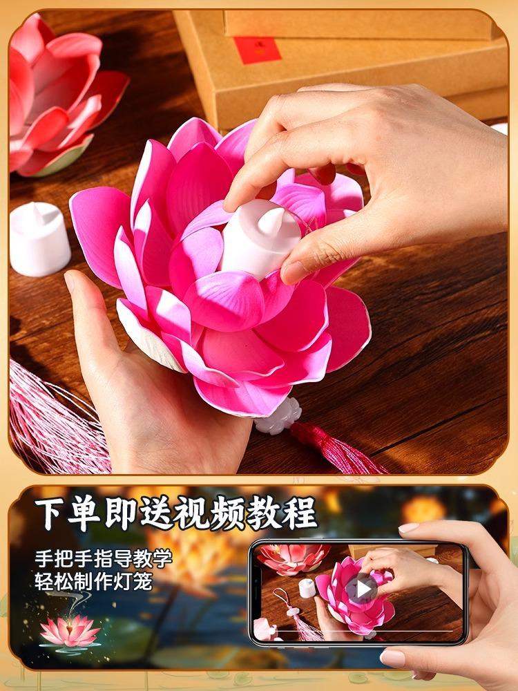 Festival de Linternas de Año Nuevo Linterna de Loto Paquete de Material DIY Linterna de Loto de Conejo Hecha a Mano Linterna de Mochila para Niños Linterna de Estilo Antiguo
