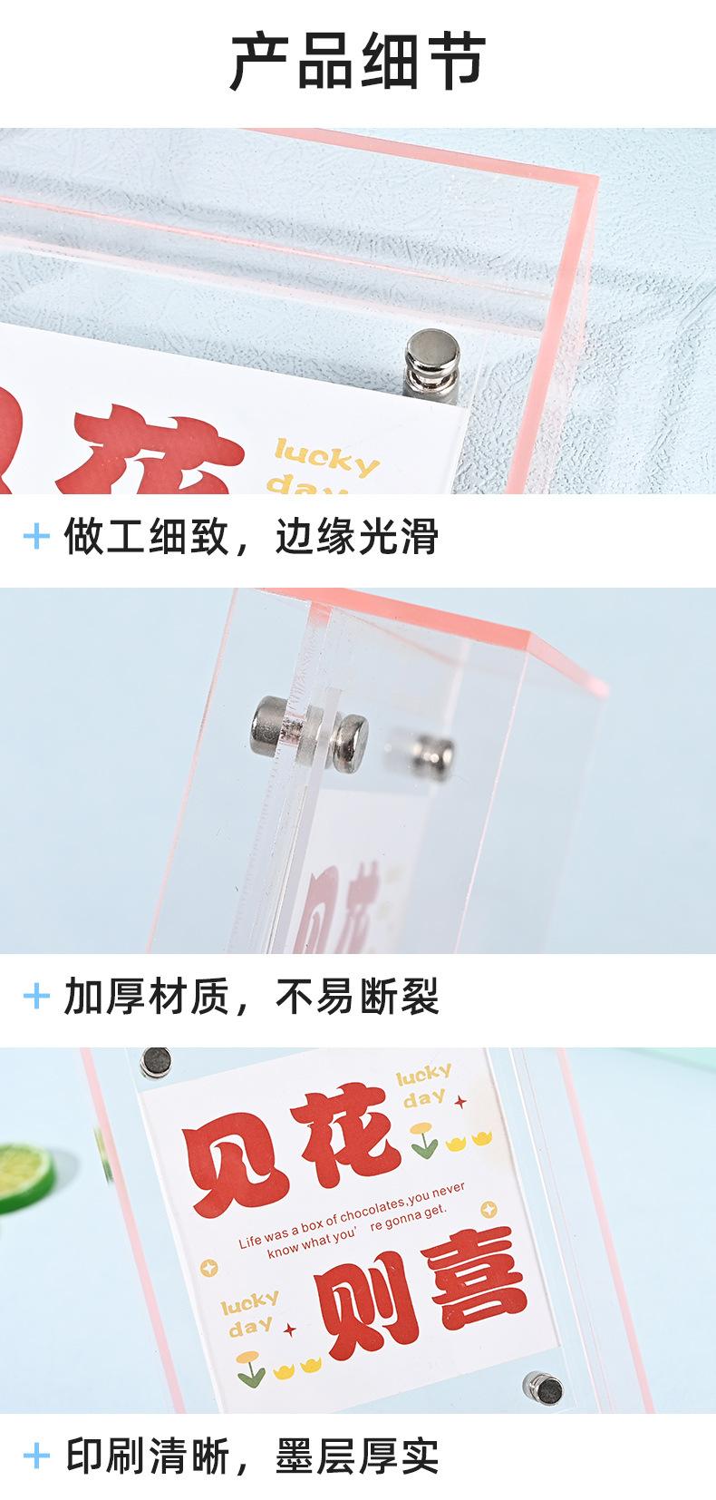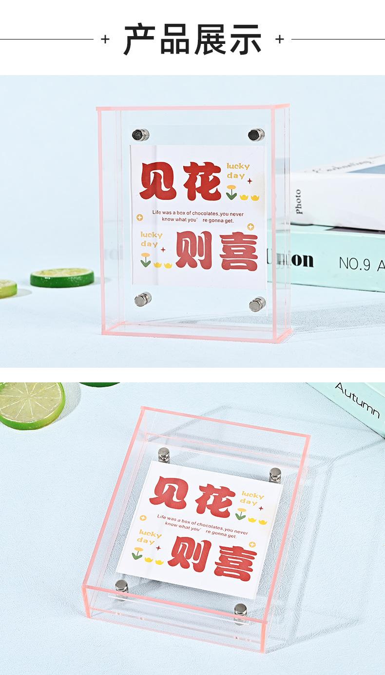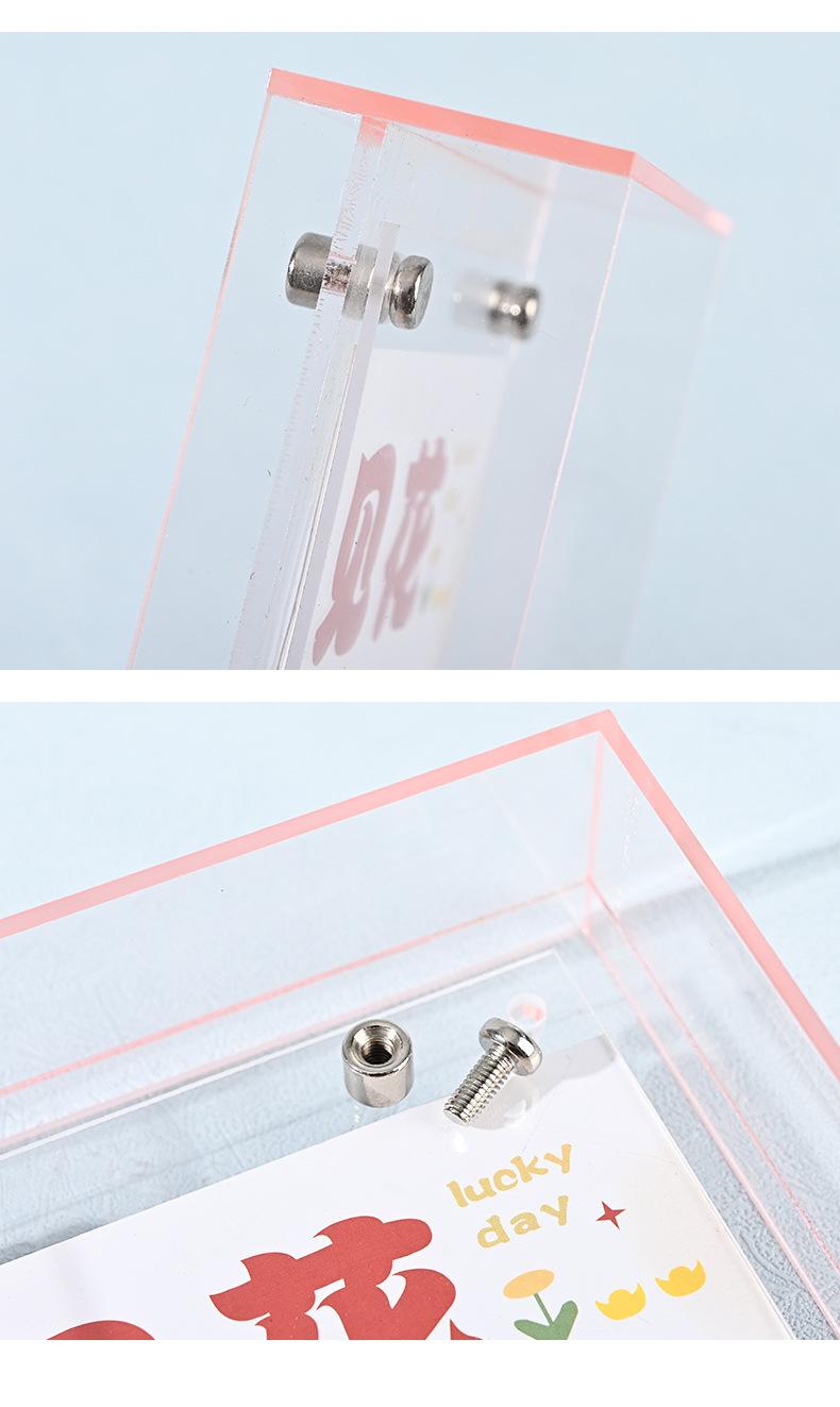 Marco de fotos acrílico personalizado de doble cara transparente, soporte de exhibición para postales, póster con clip.