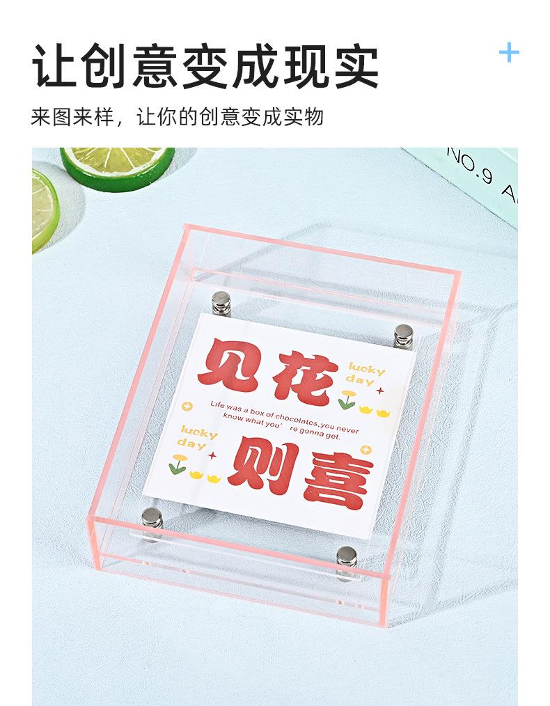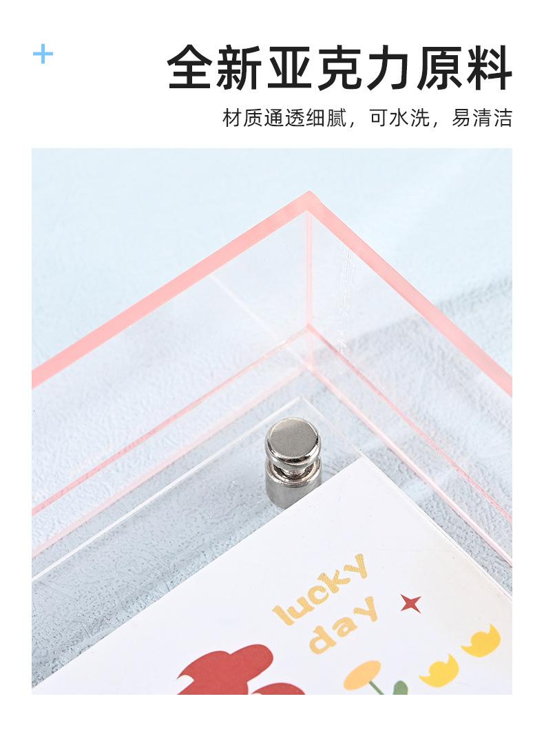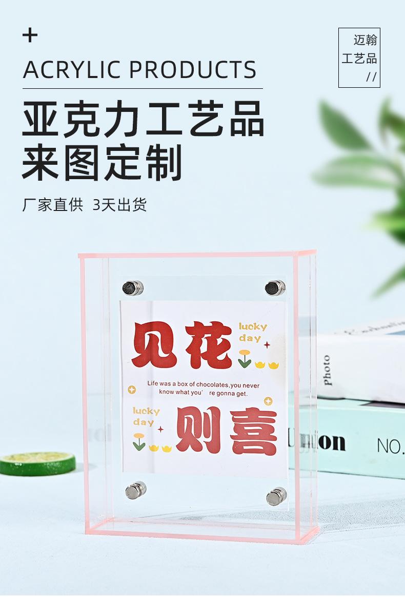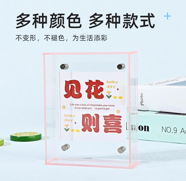 Marco de fotos acrílico personalizado de doble cara transparente, soporte de exhibición para postales, póster con clip.