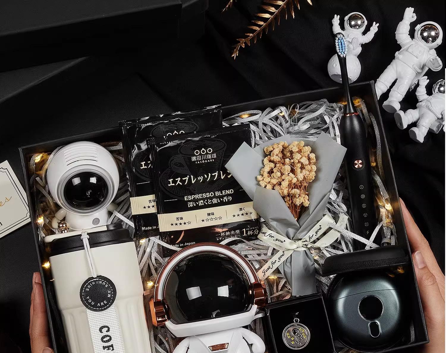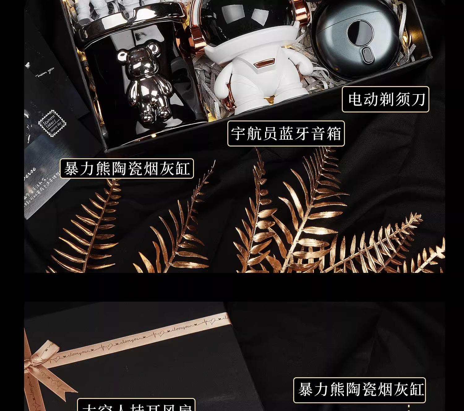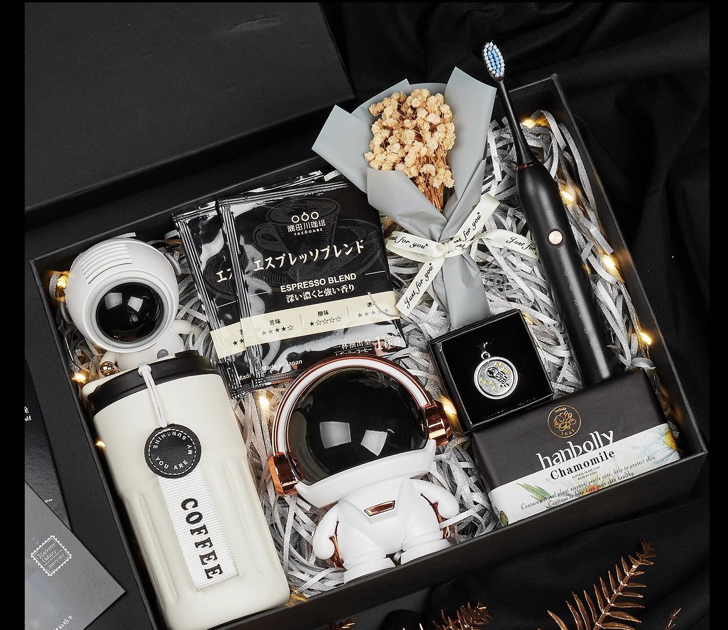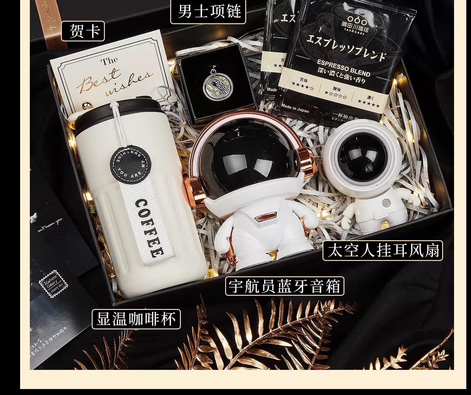Chinese valentine's day gift box 03: ❤ styling male ❤ thermos cup + shaver + bluetooth speaker + necklace + coffee