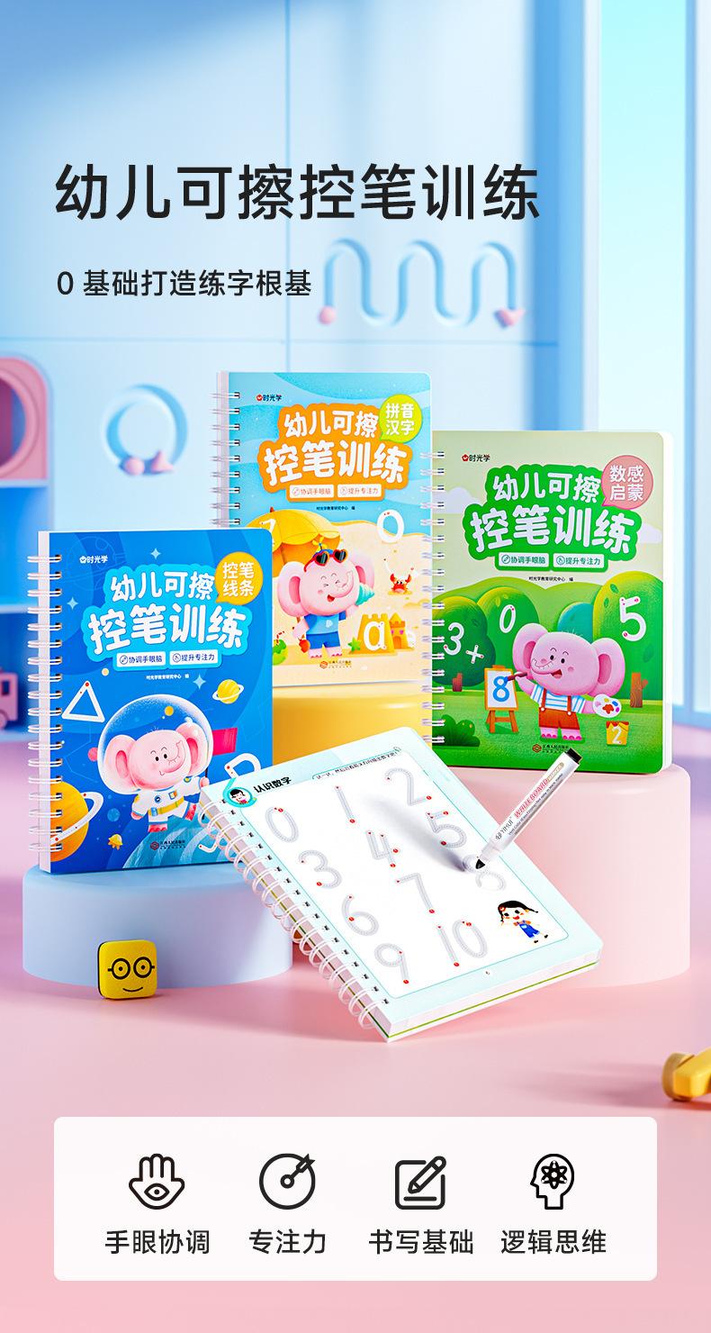 [all 3 volumes] early childhood erasable pen control set★Free 2 whiteboard pens + 1 eraser [all products in time learning, douyin kuaishou is prohibited from being put on the shelves, limited price 39.9 yuan]