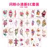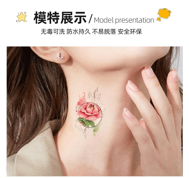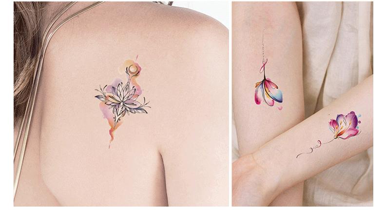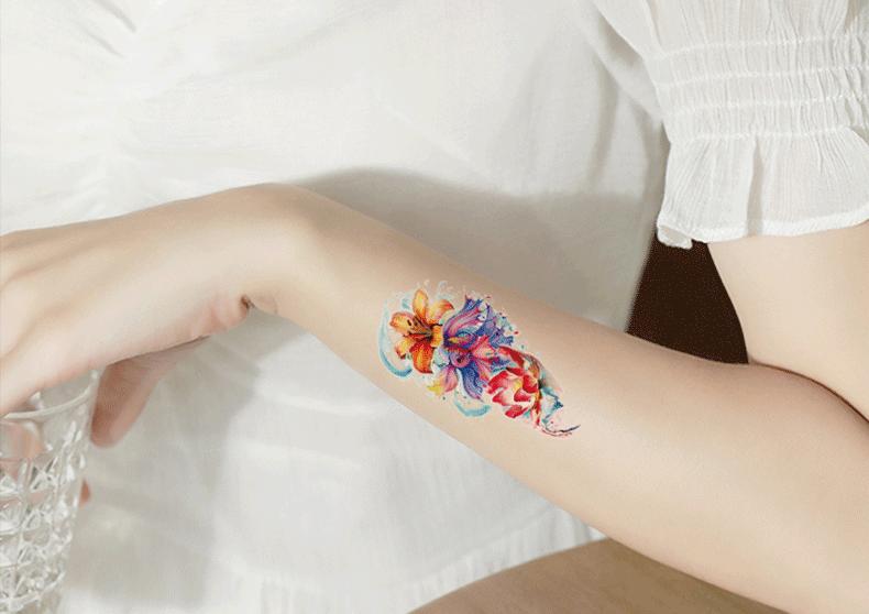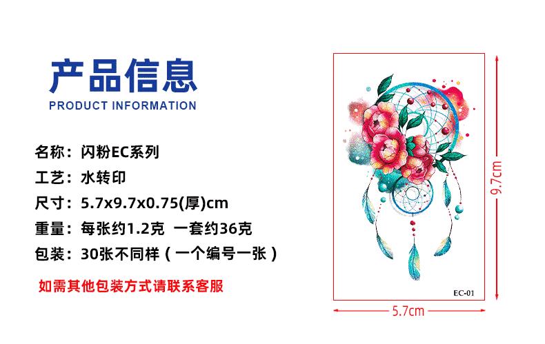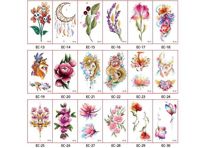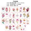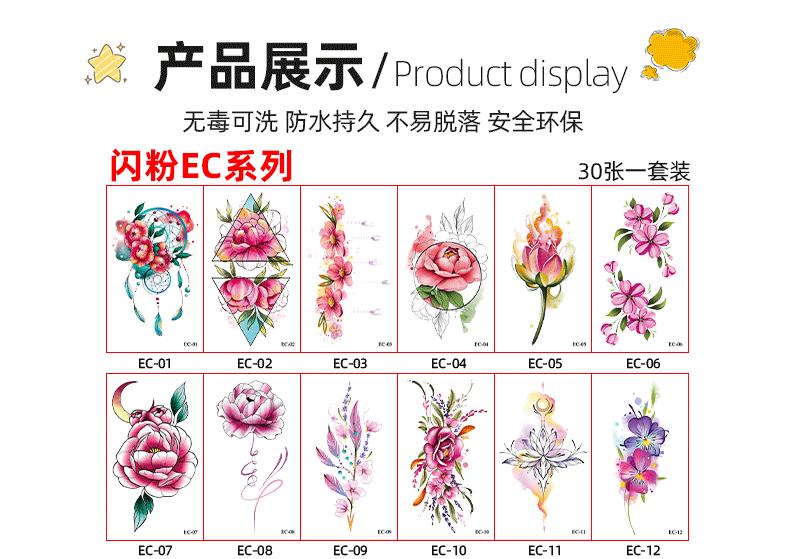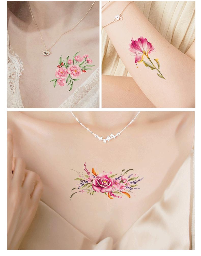 Pegatinas de tatuaje pequeñas y frescas con purpurina transfronteriza, resistentes al agua, para mujeres europeas y americanas, con flores de colores, simulación de pegatinas verdes para tatuajes.