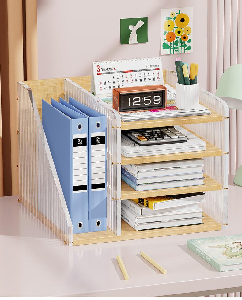 Estante de almacenamiento de archivos de oficina, encimera de estudio, estantería simple de múltiples capas, estante de almacenamiento de escritorio para niños, estante de ajuste para el hogar