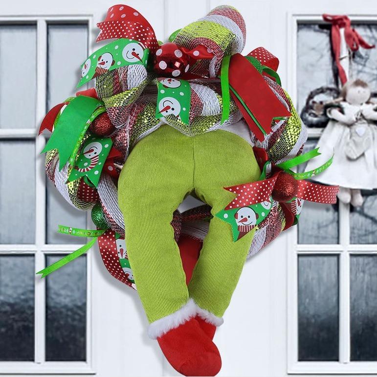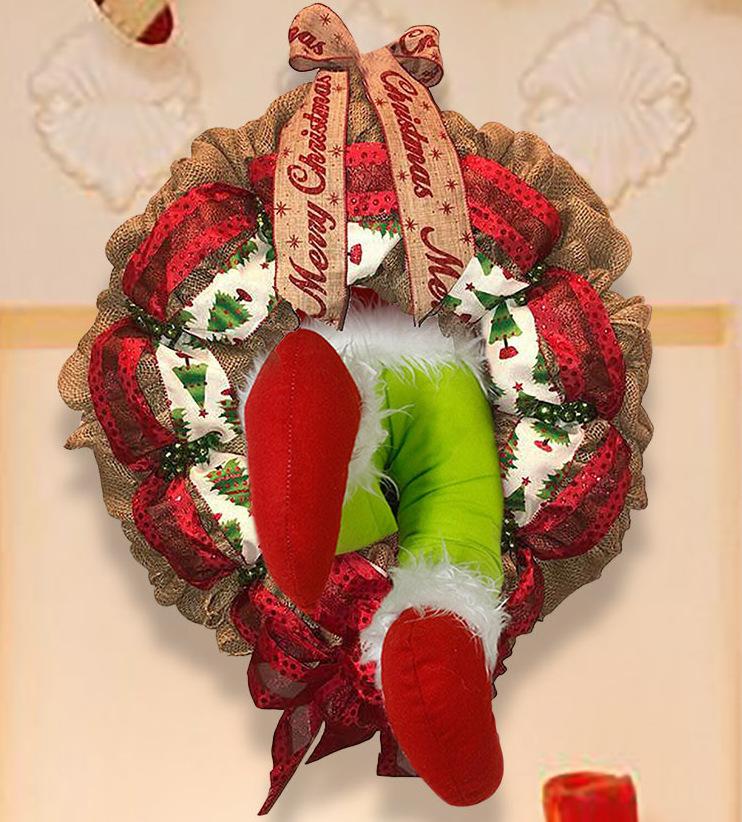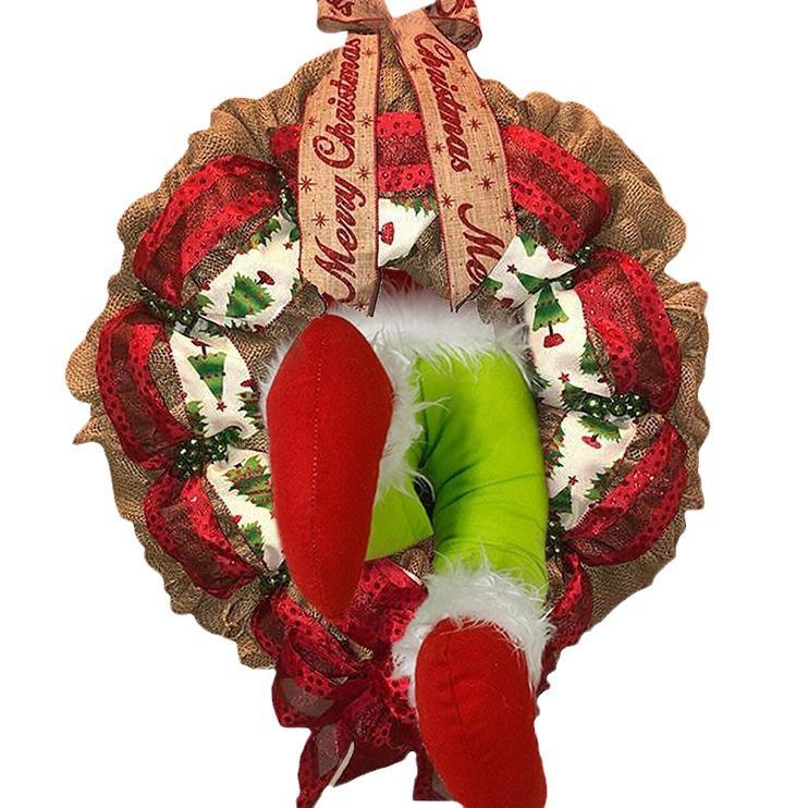 Productos superventas transfronterizos Ladrón de Navidad corona de tela rústica 12 pulgadas, 16 pulgadas